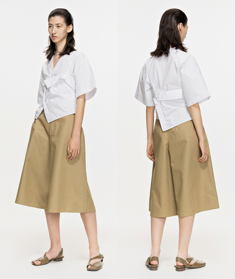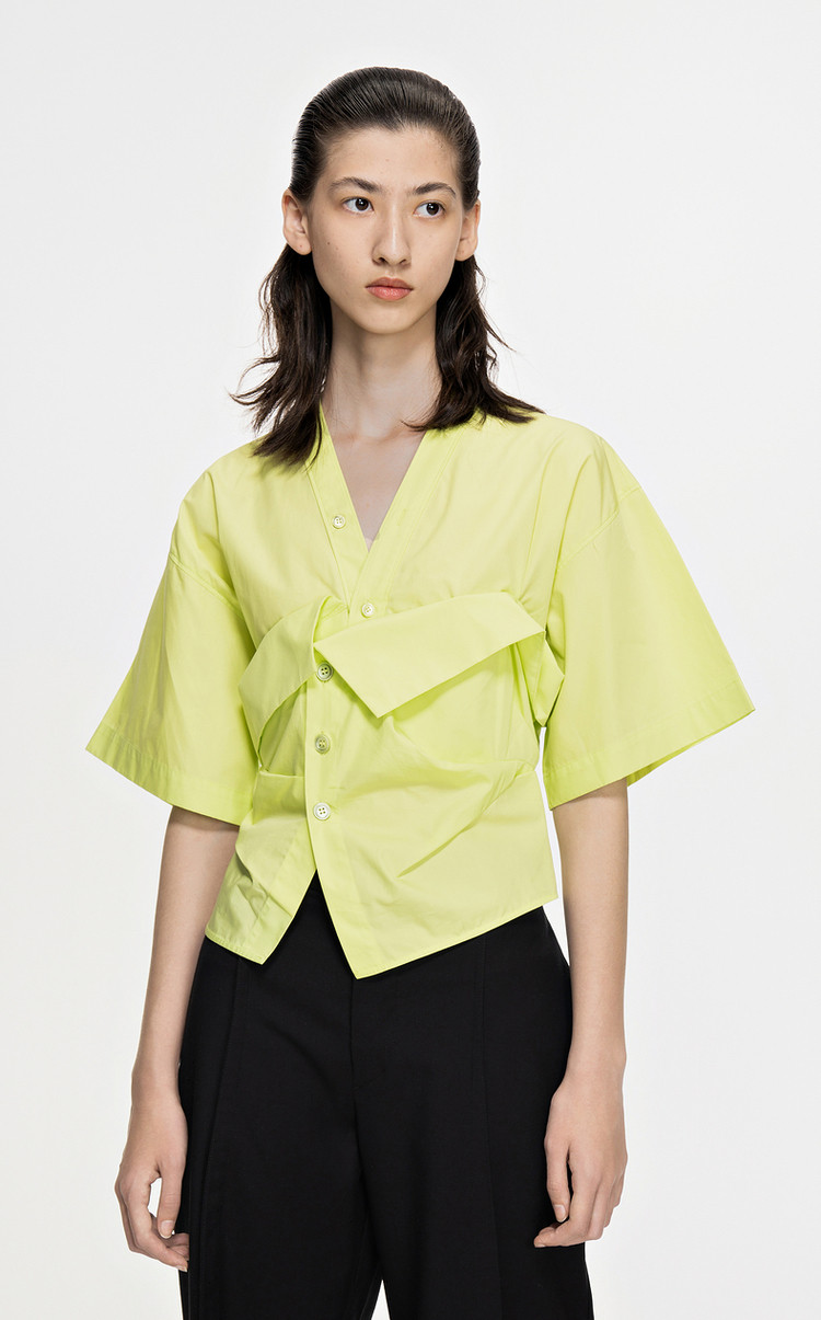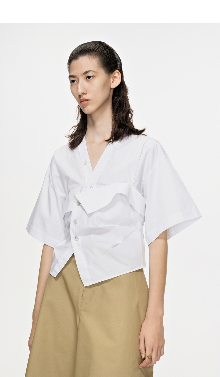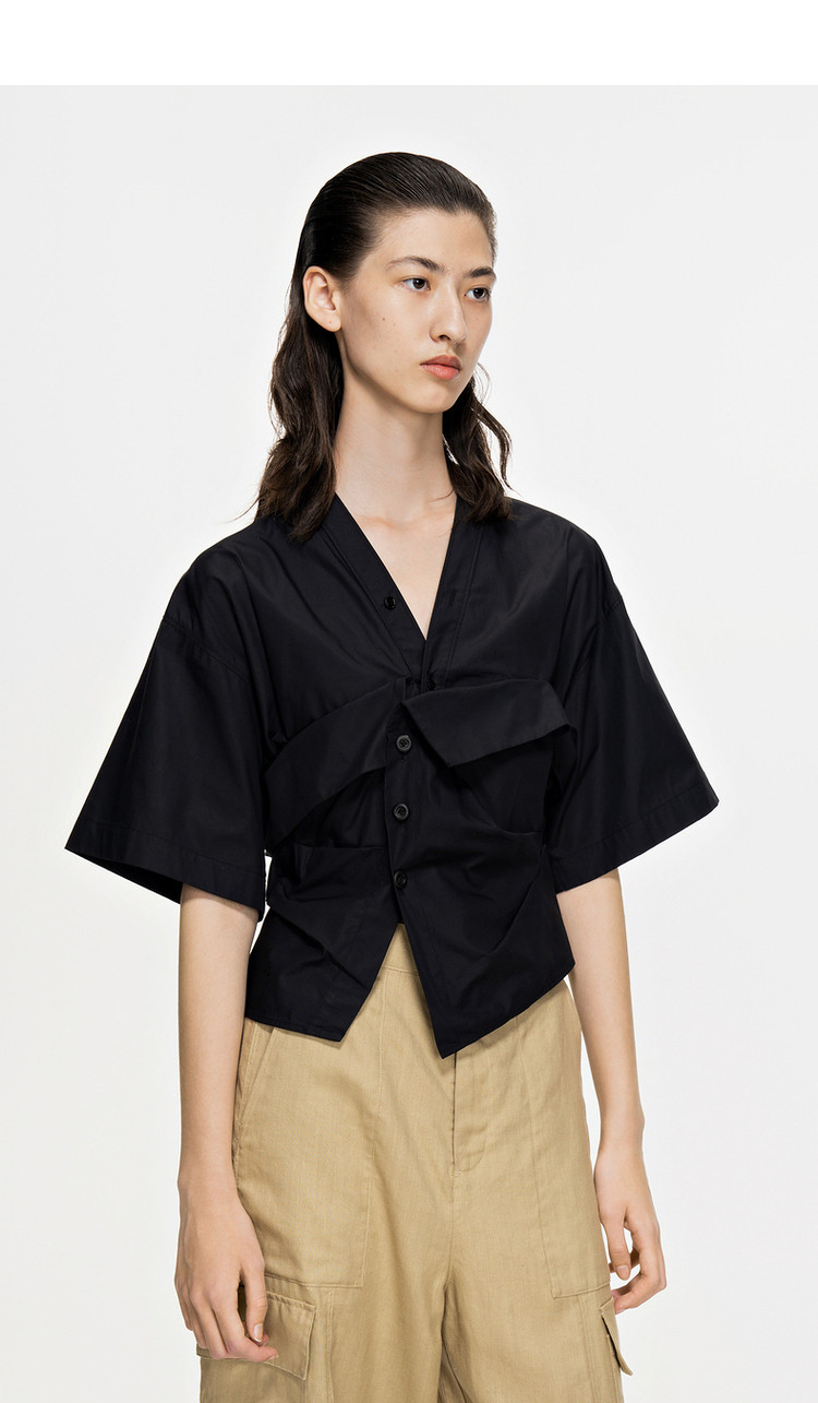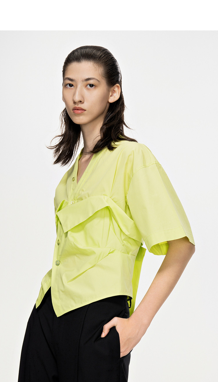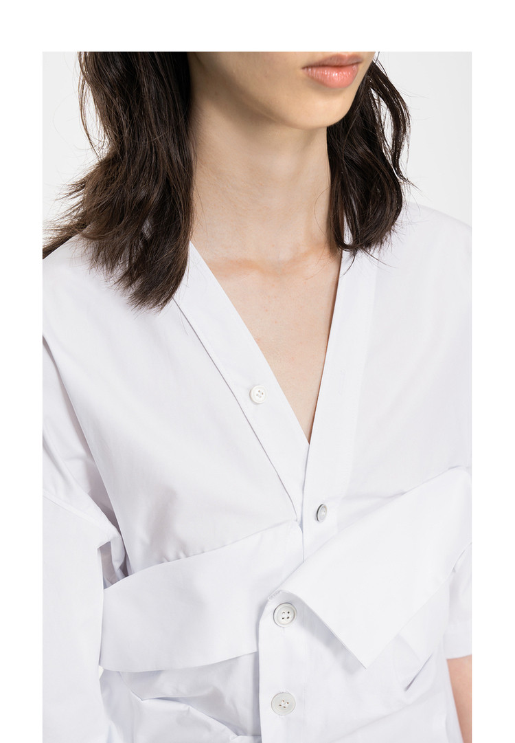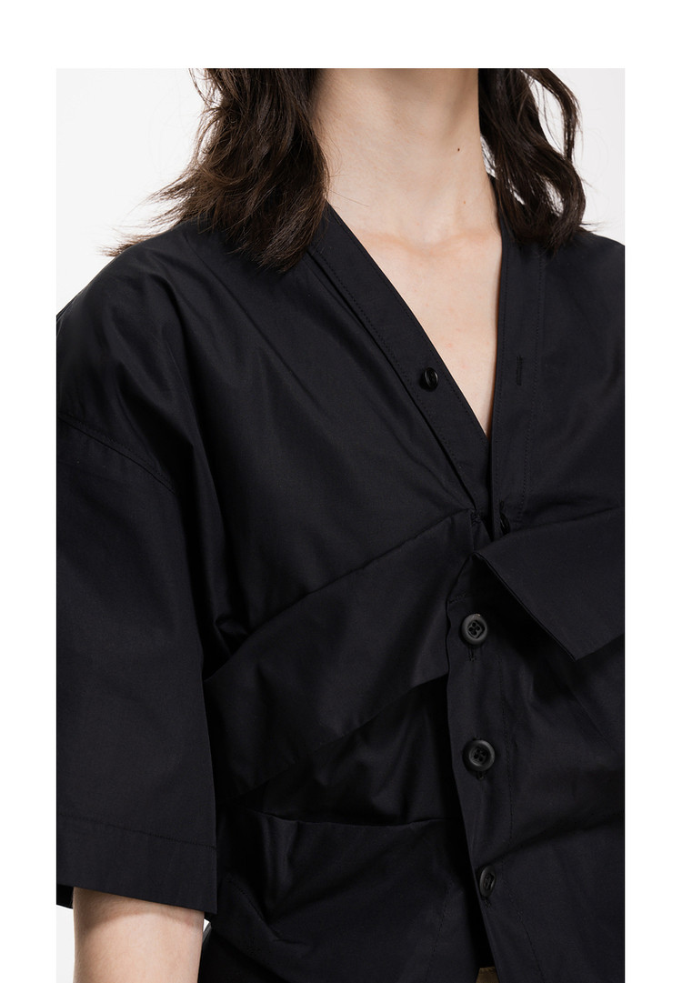 夏衬衫宽松休闲短袖V领衬衣女 028043