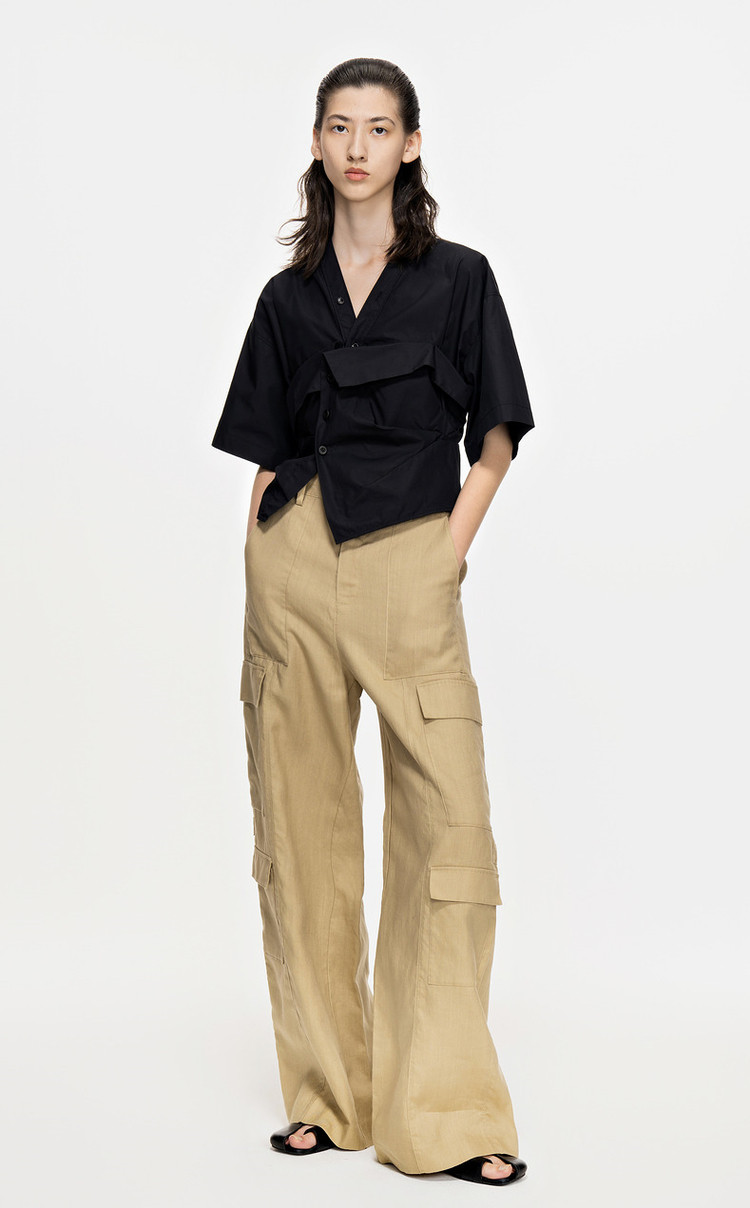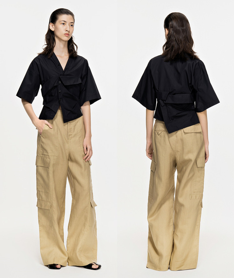 商品名称:夏衬衫宽松休闲短袖V领衬衣女 028043