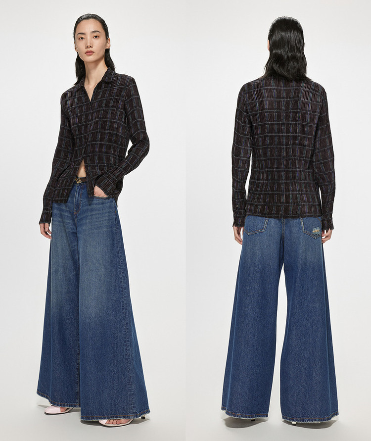 【牛仔衬衫】春秋季大翻领长袖衬衣女装上衣 169665
