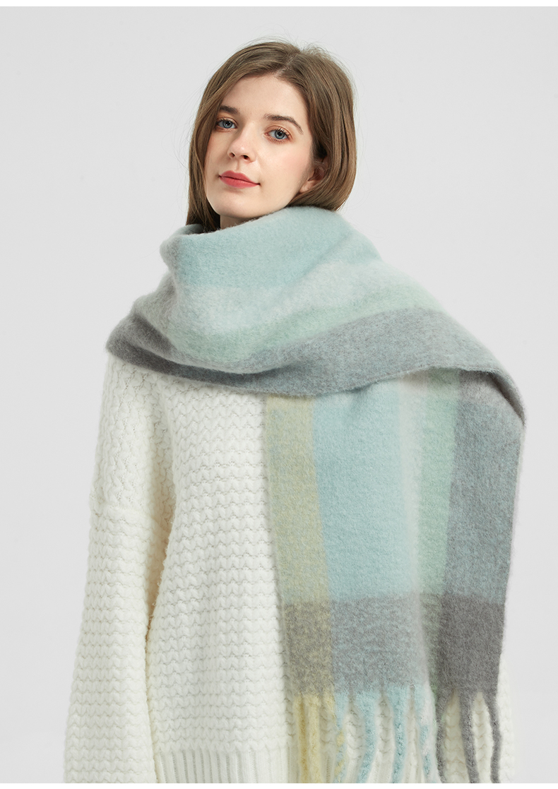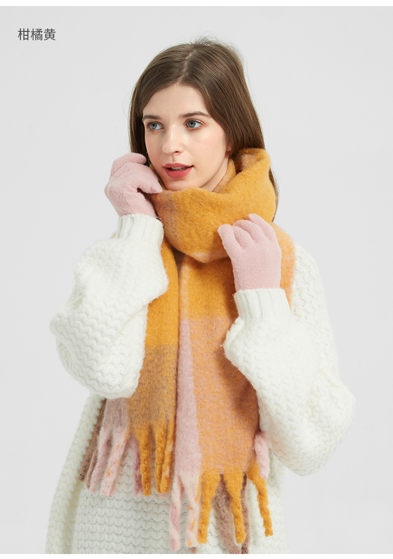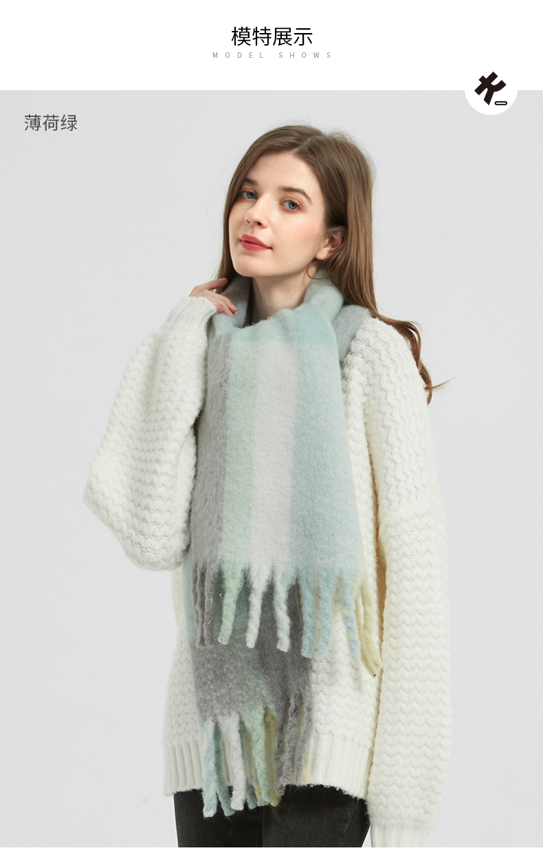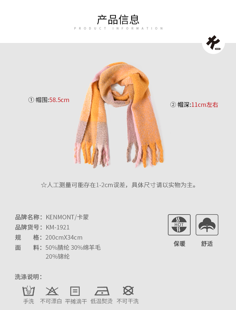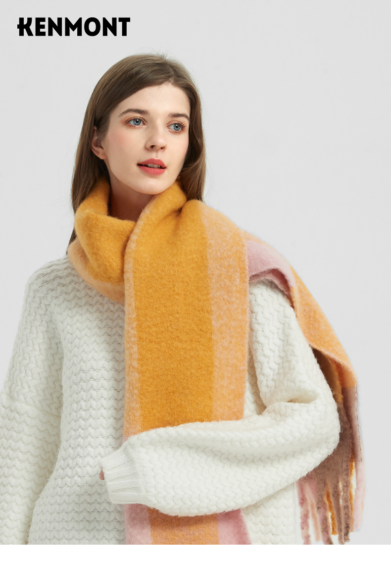 商品名称:卡蒙亲肤绵羊毛时尚韩版百搭格子流苏围巾女冬天舒适保暖毛绒围脖KM-1921