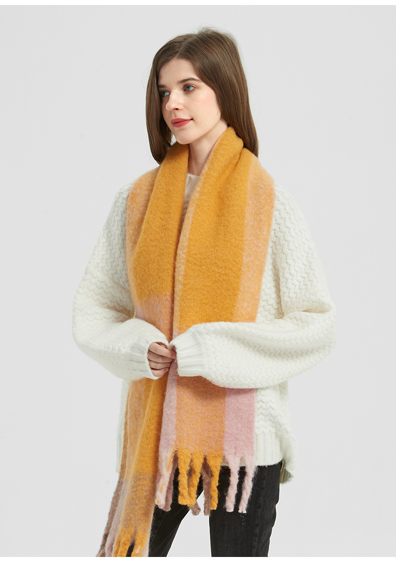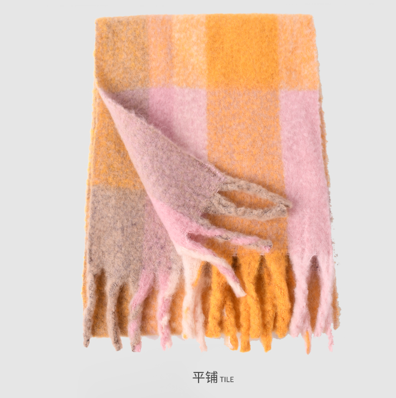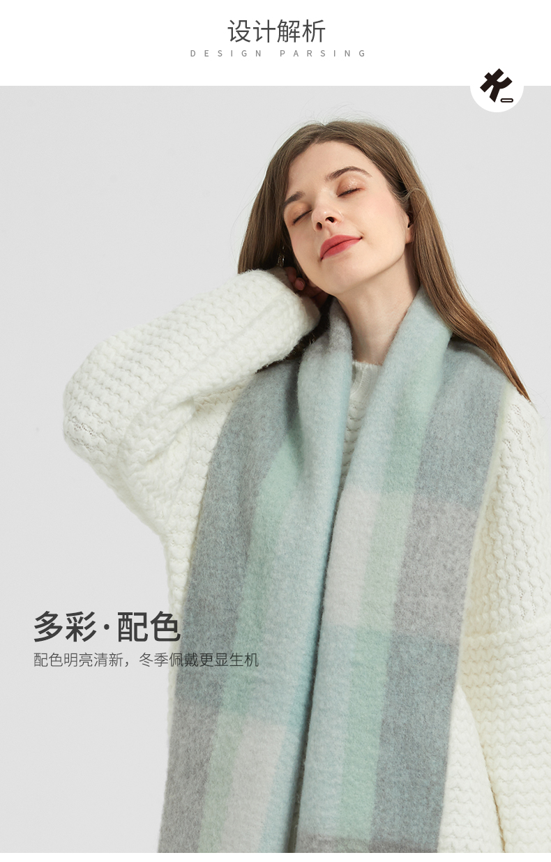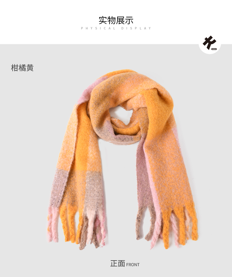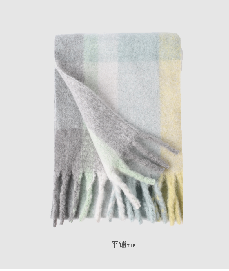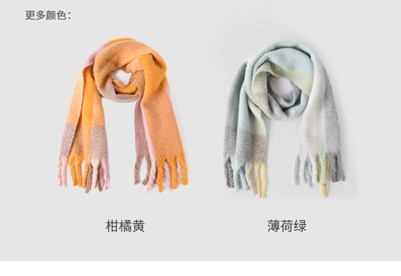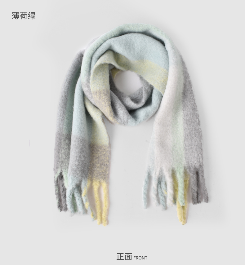 商品名称:卡蒙亲肤绵羊毛时尚韩版百搭格子流苏围巾女冬天舒适保暖毛绒围脖KM-1921