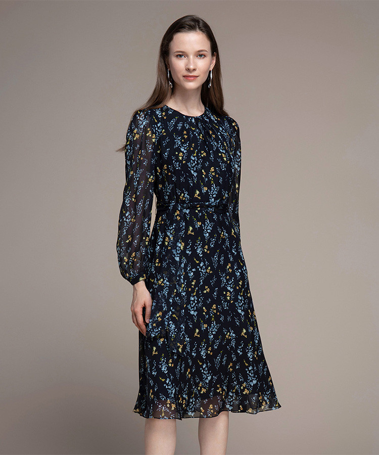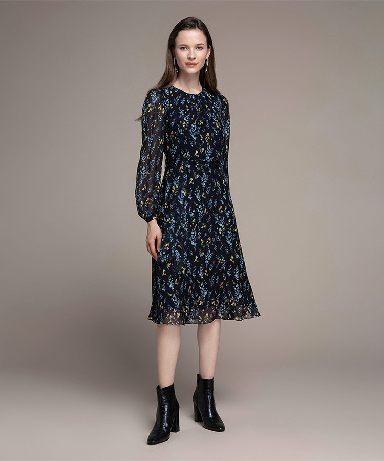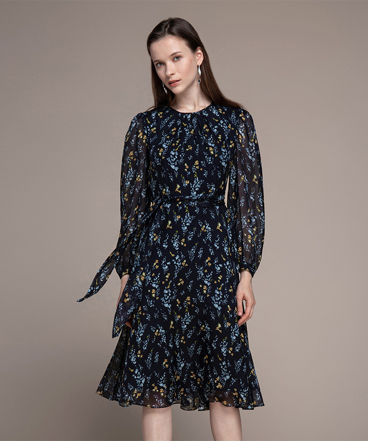 商品名称:PORTS宝姿女装秋季藤萝花园印花长袖圆领连衣裙 102794