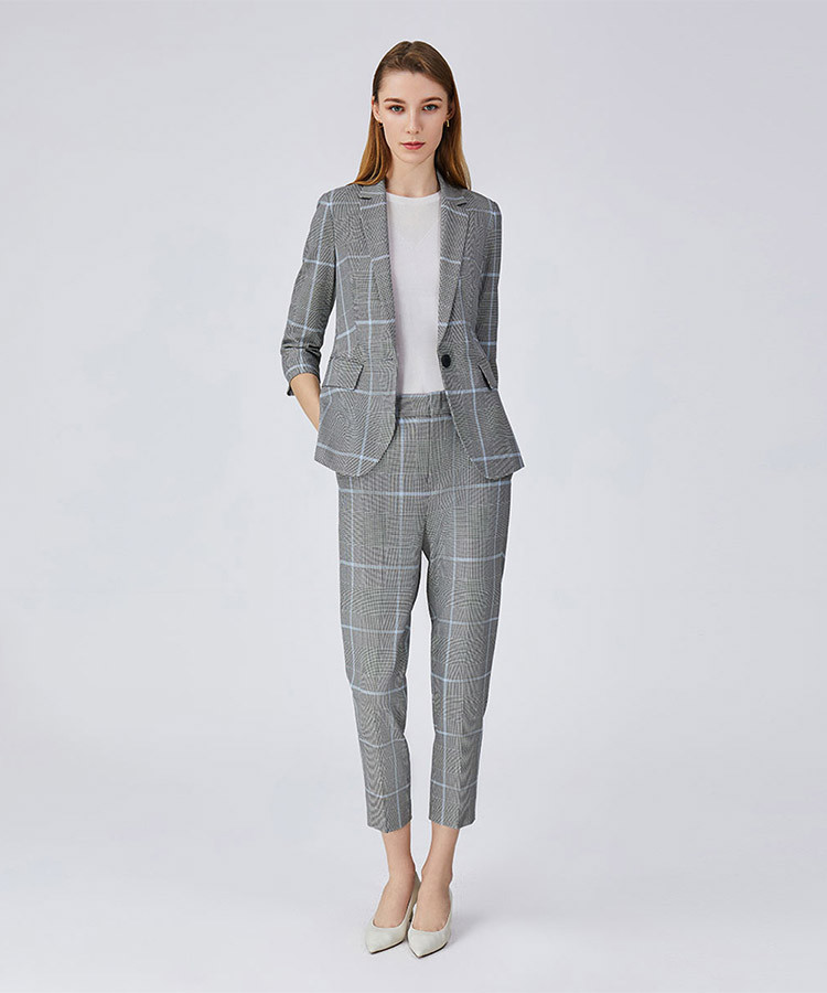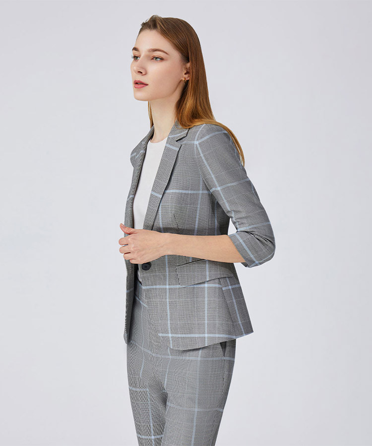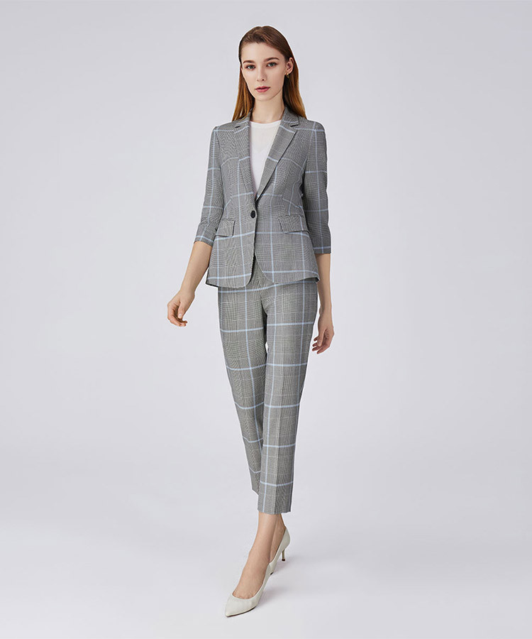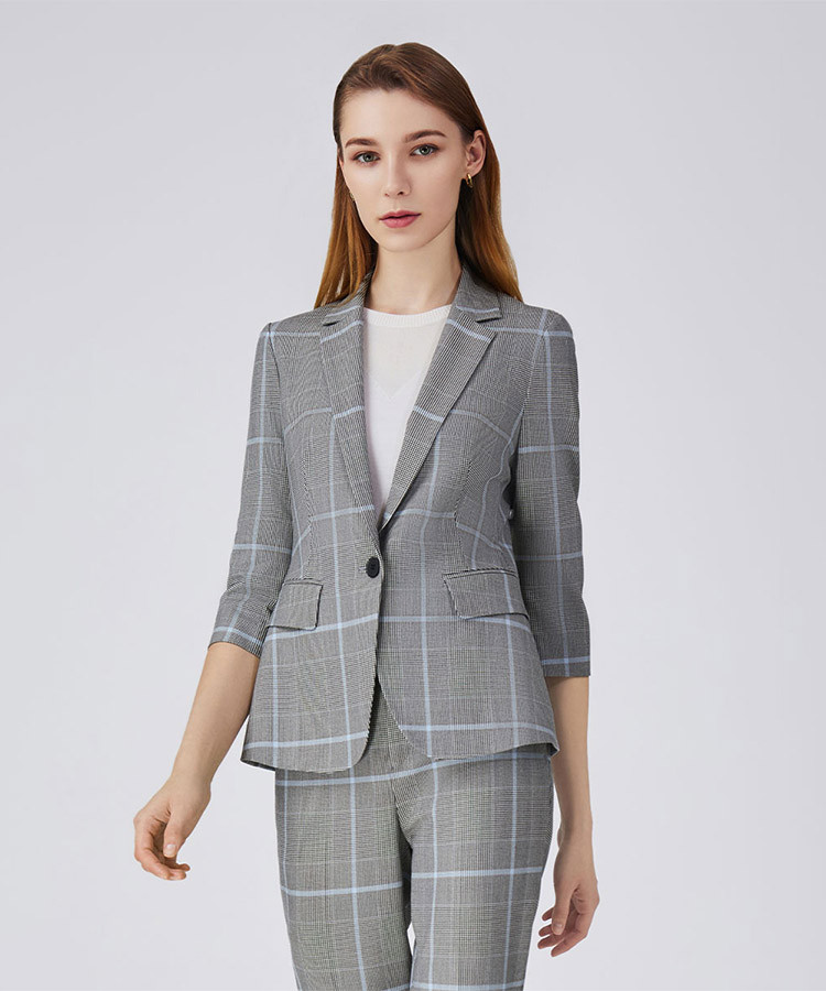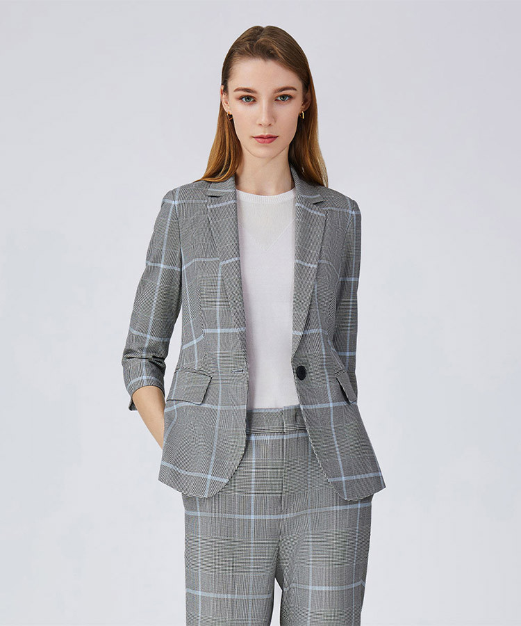 商品名称:宝姿春夏款格纹温婉精致干练设计感女装中袖中长夹克 786250