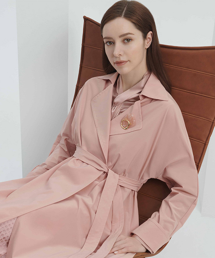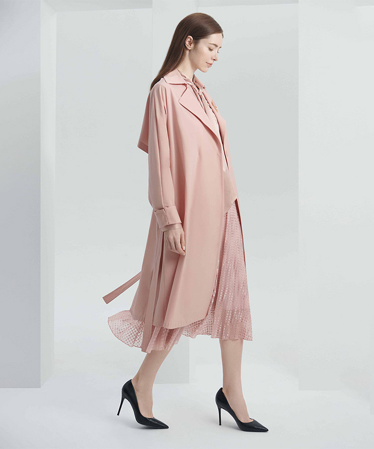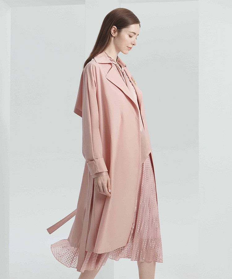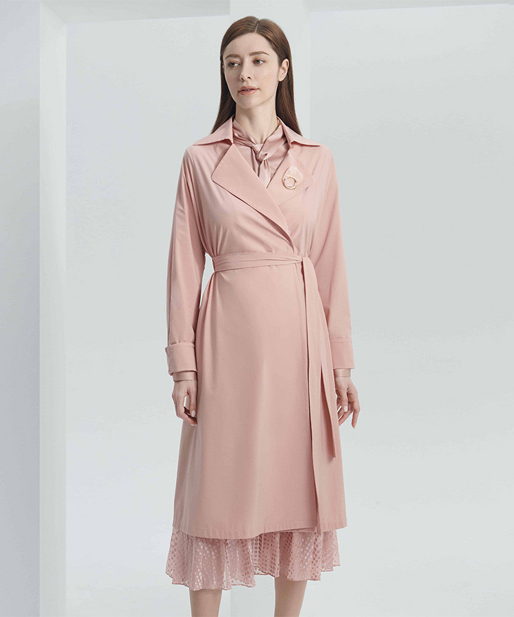 女装温柔淑女甜美长袖舒适中长收腰风衣 536330