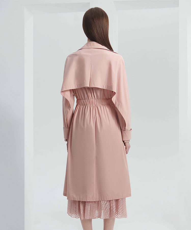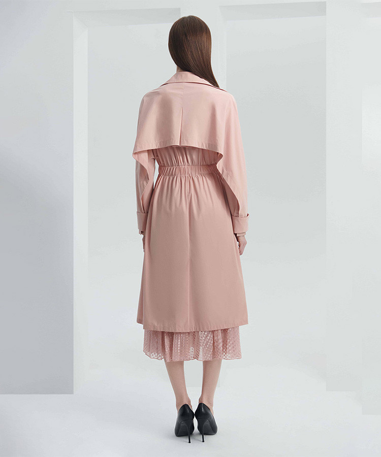 商品名称:女装温柔淑女甜美长袖舒适中长收腰风衣 536330