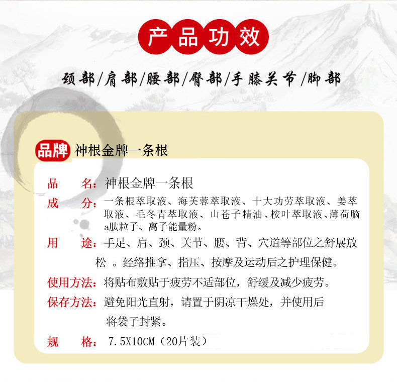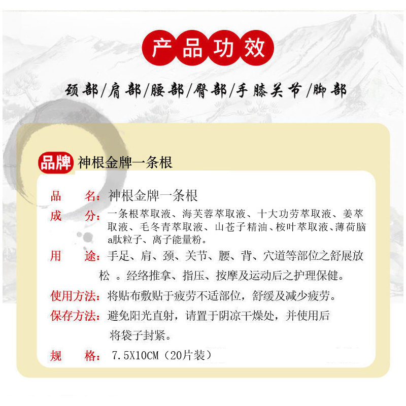 商品名称:神根精油贴【规格:20片/包(7.5*10)】