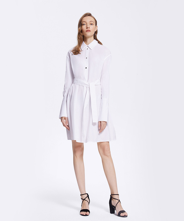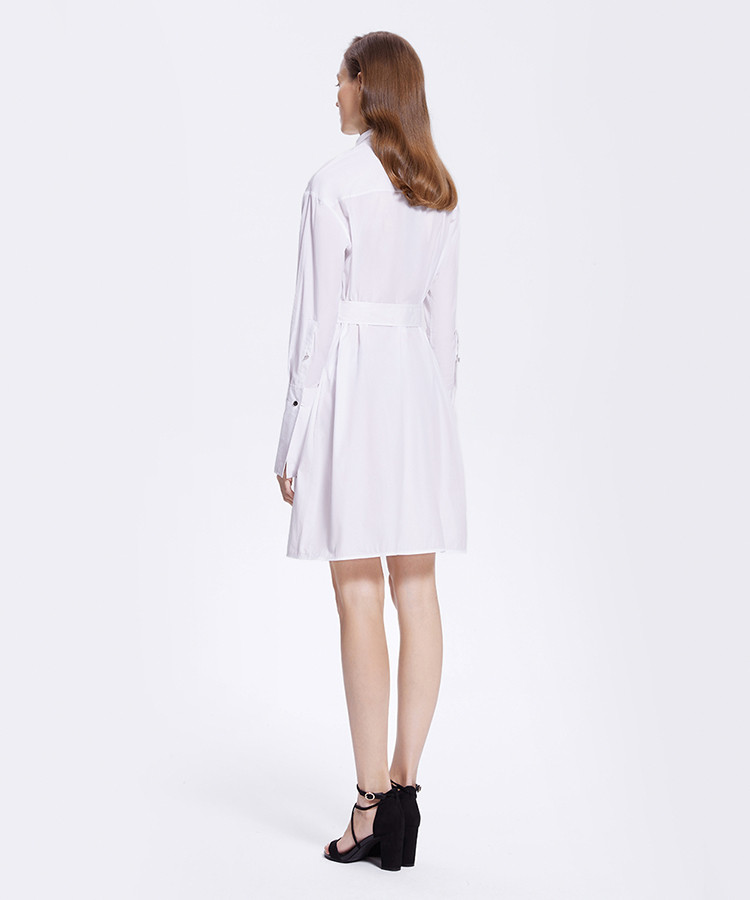 商品名称:宝姿女装气质时尚纽扣系带长袖中长连衣裙 674378