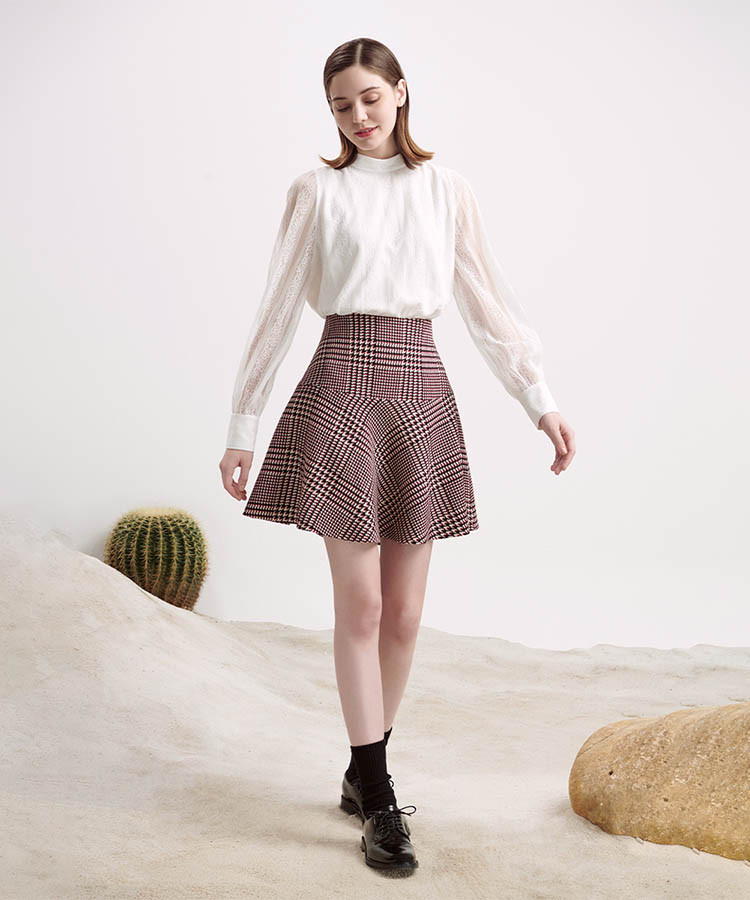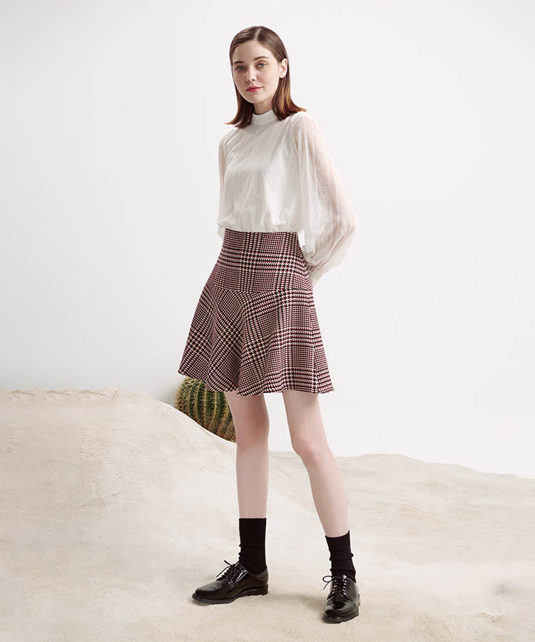 商品名称:PORTS宝姿女装秋季复古休闲千鸟格半身裙女 981514