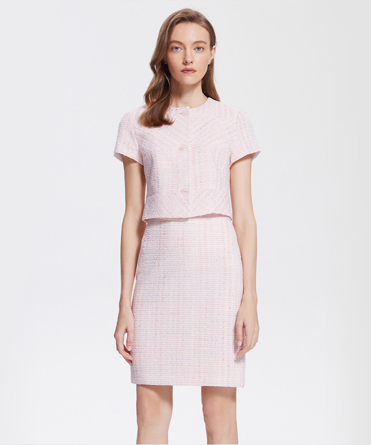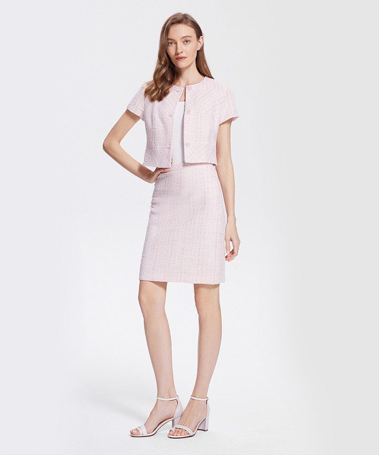 商品名称:PORTS宝姿女装春秋通勤海盐粉花呢短款夹克外套 130826