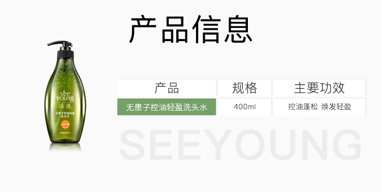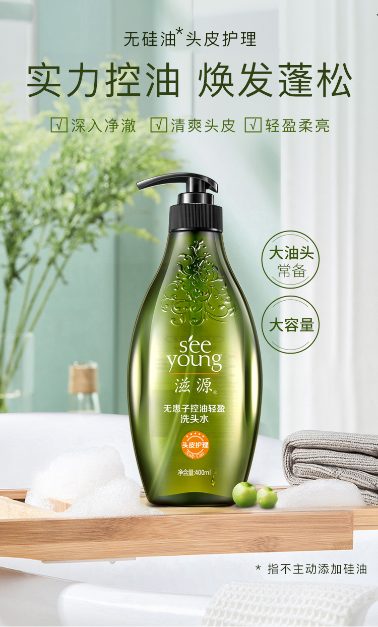 商品名称:滋源 无患子洗发水 400ml 控油轻盈洗发露洗头膏 无硅油 补水控油 清爽蓬松
