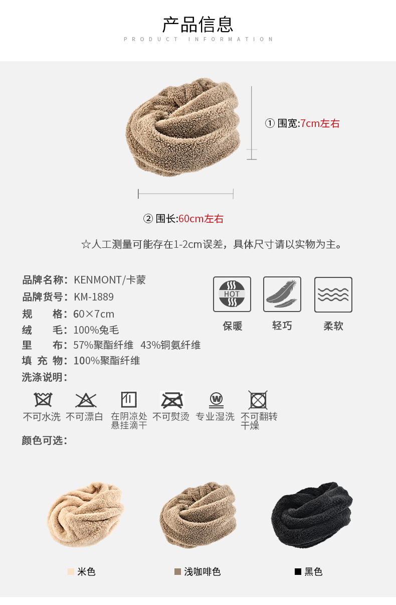 商品名称:卡蒙海虎里柔软围脖户外冬季保暖女围巾韩版文艺围脖加厚男士脖套KM-1889