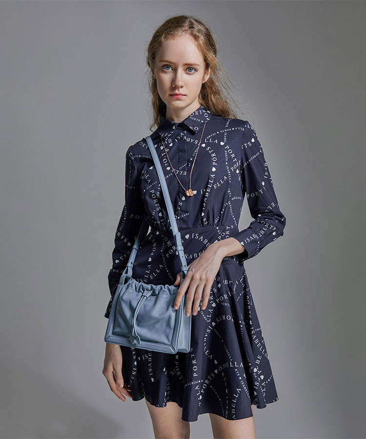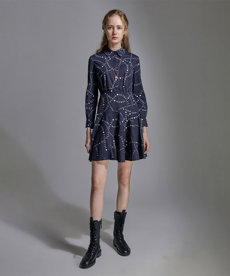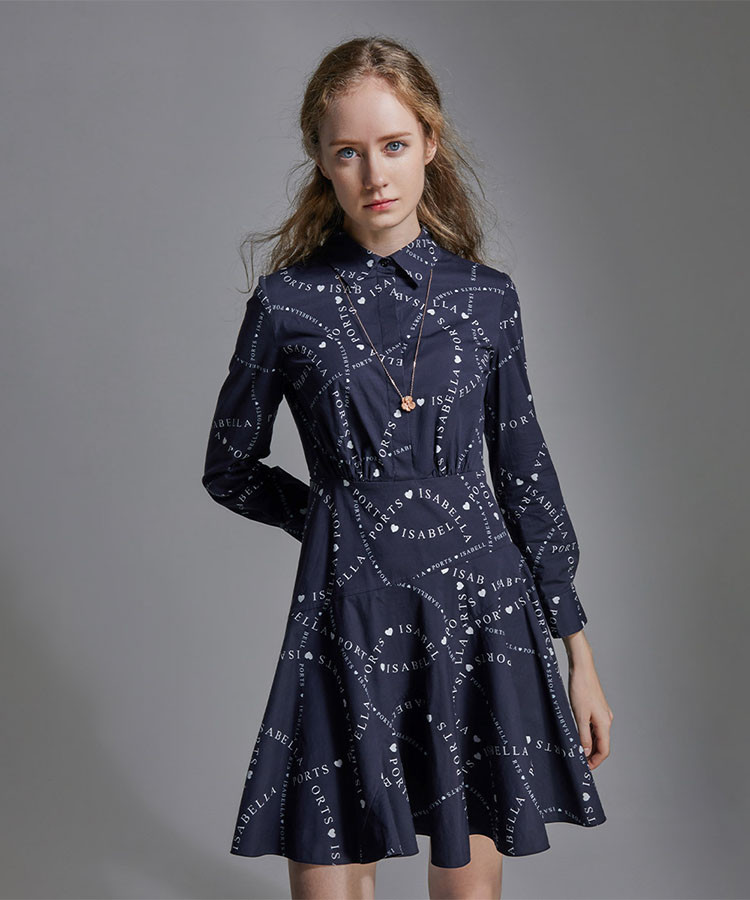 商品名称:宝姿女装春夏时尚印花设计休闲百搭长袖短连衣裙 758410