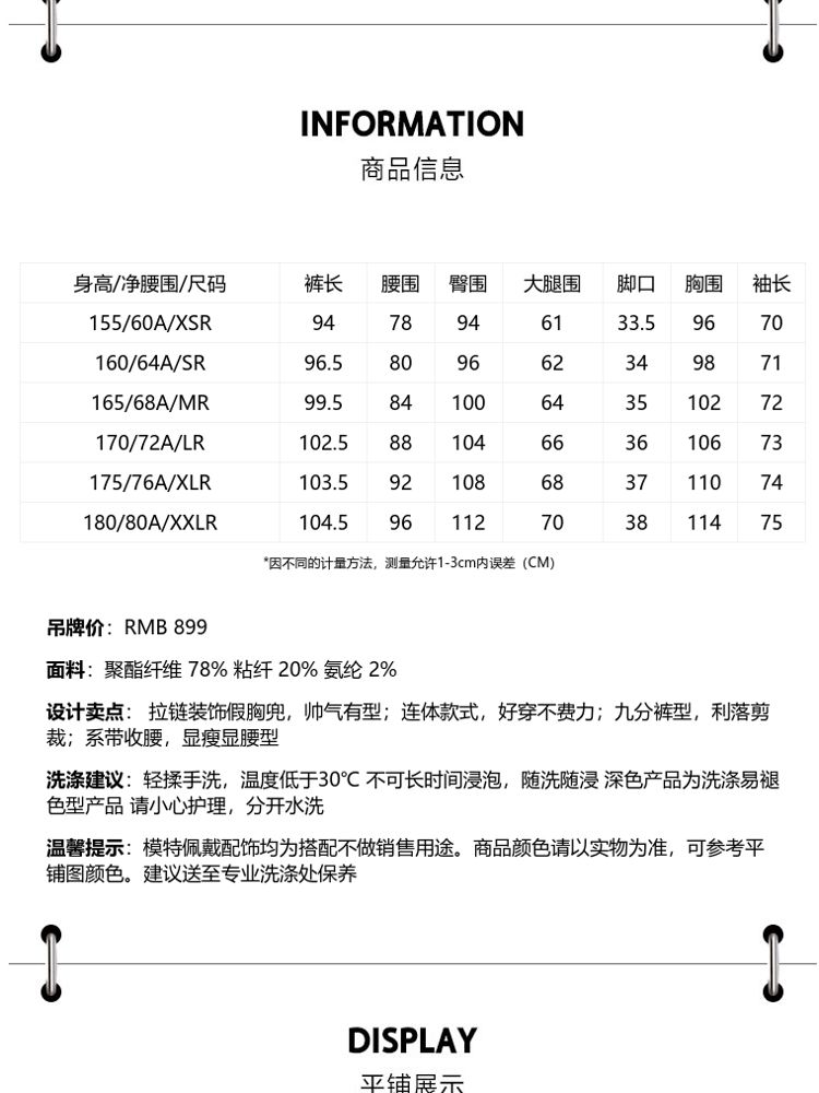 商品名称:【专柜同款】春夏优雅纯色长袖九分长袖连体衣连体裤气质百搭时尚 996369