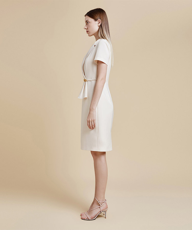 商品名称:宝姿女装春夏浅亚麻金Two-In-One款V领短袖中长连衣裙 724618