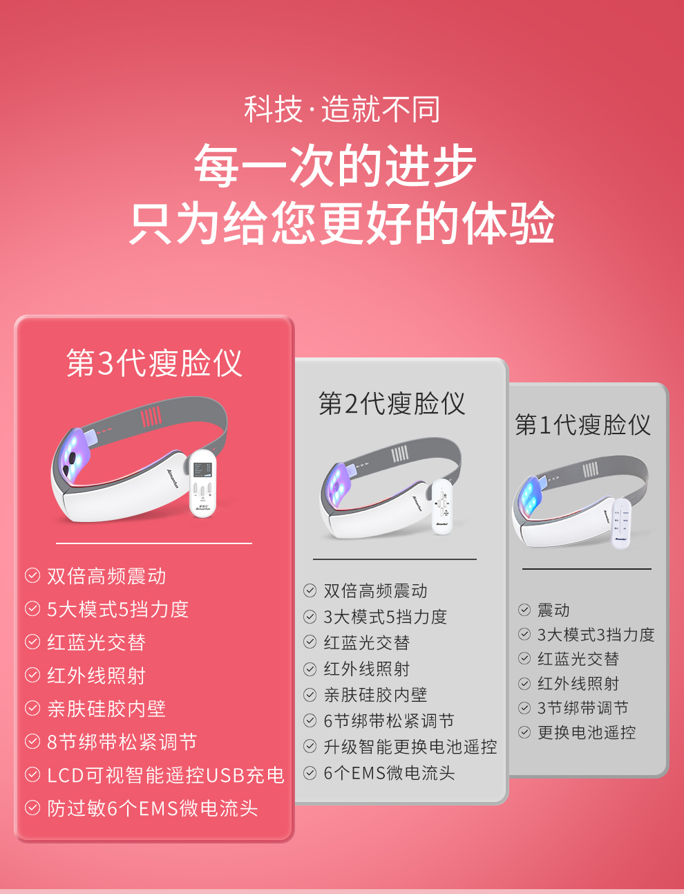 爱满分 神器提拉紧致v脸法令纹颈纹咬肌女男士专用仪脸部按摩器