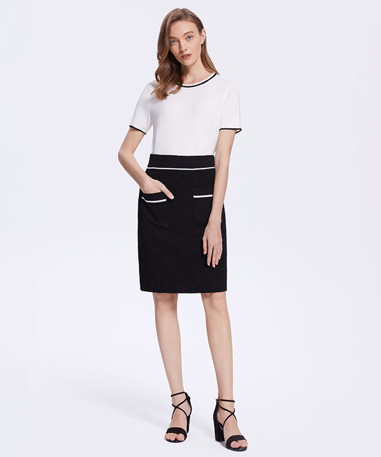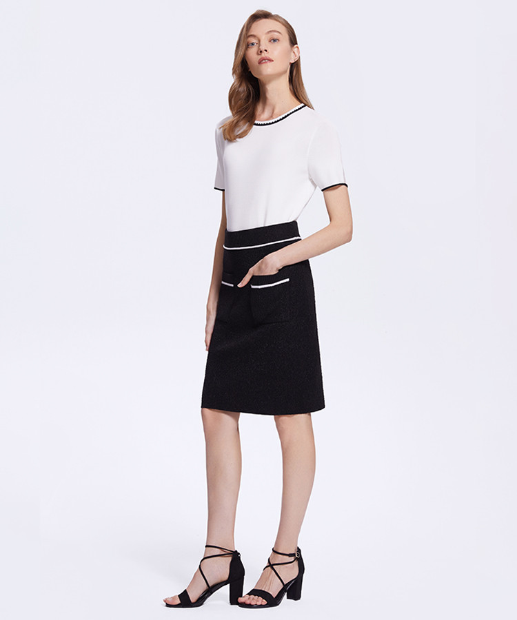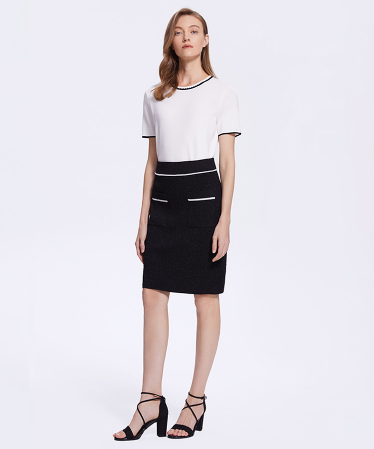 商品名称:PORTS宝姿女装夏季时尚撞色羊毛针织提花半身裙LM8K211MZF004 702282