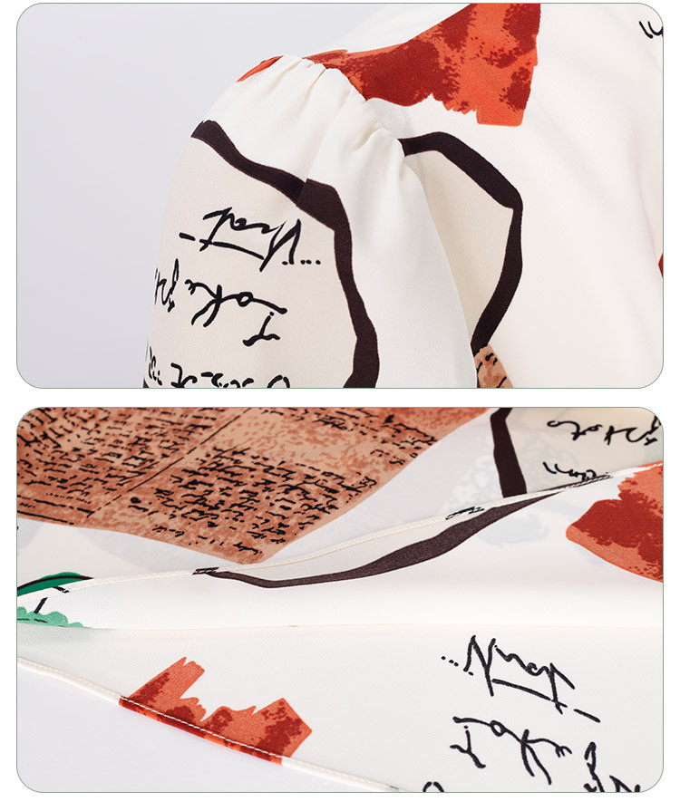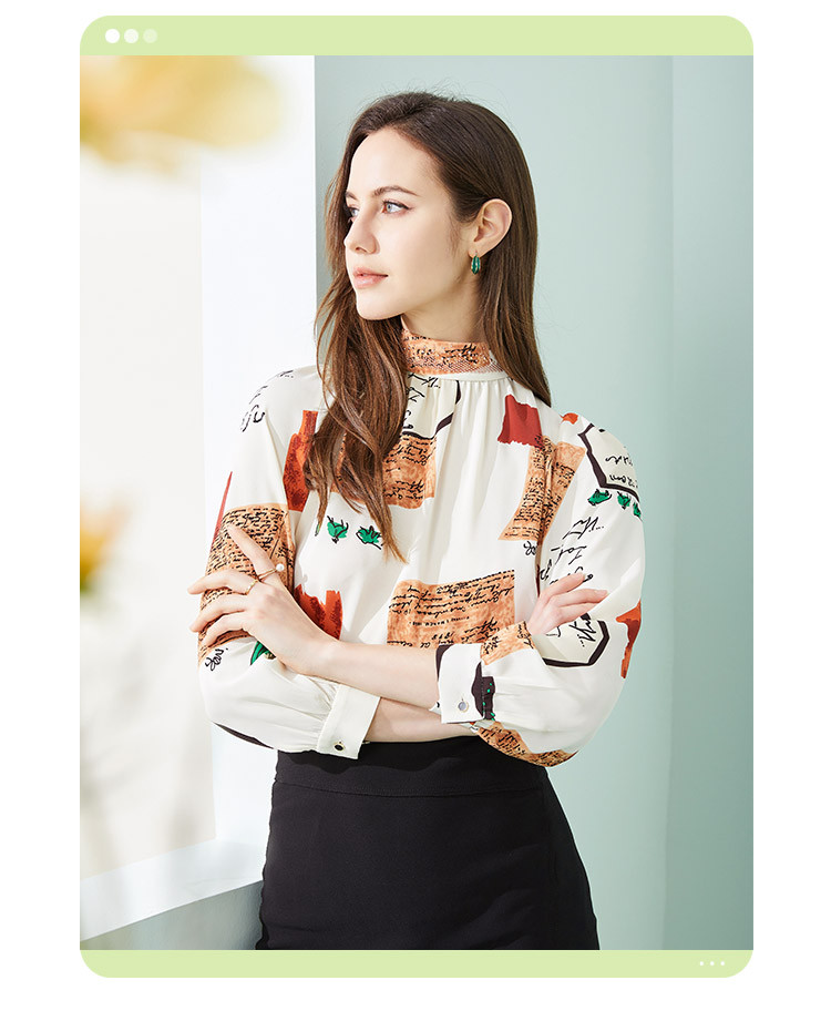 【漫步云端】春秋V领雪纺长袖衬衫印花衬衣女装上衣 498497