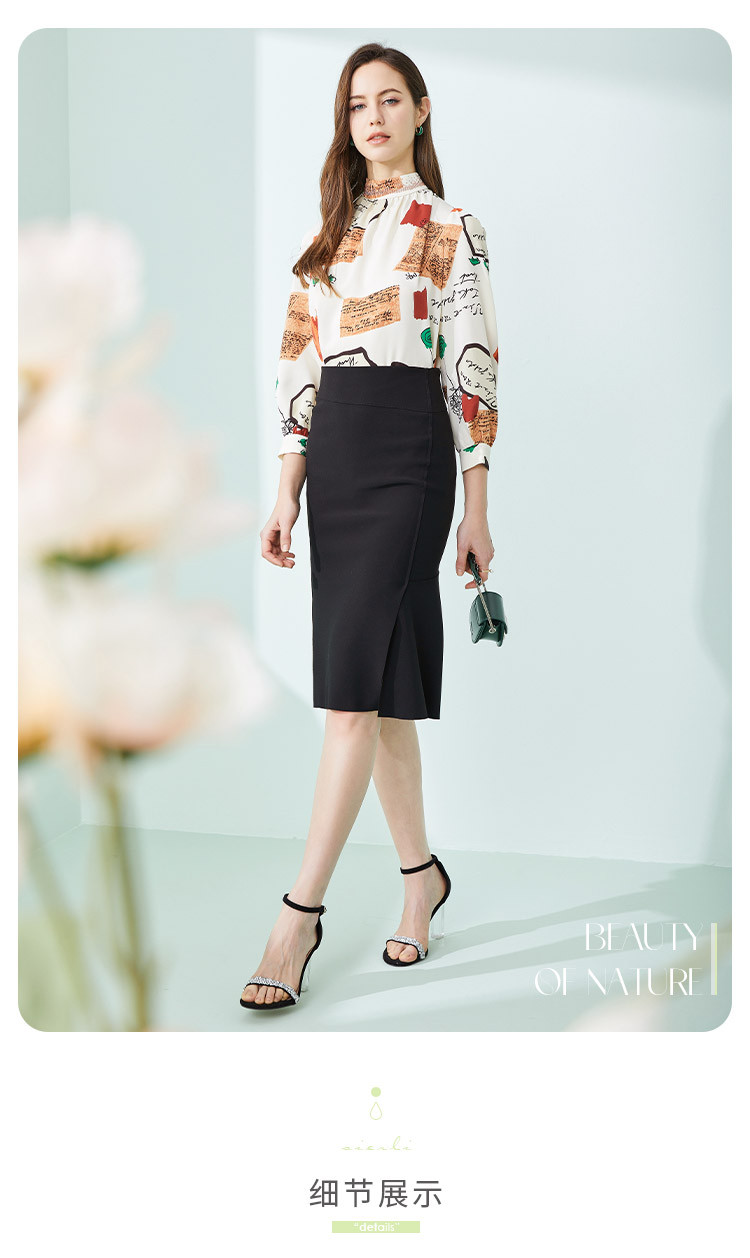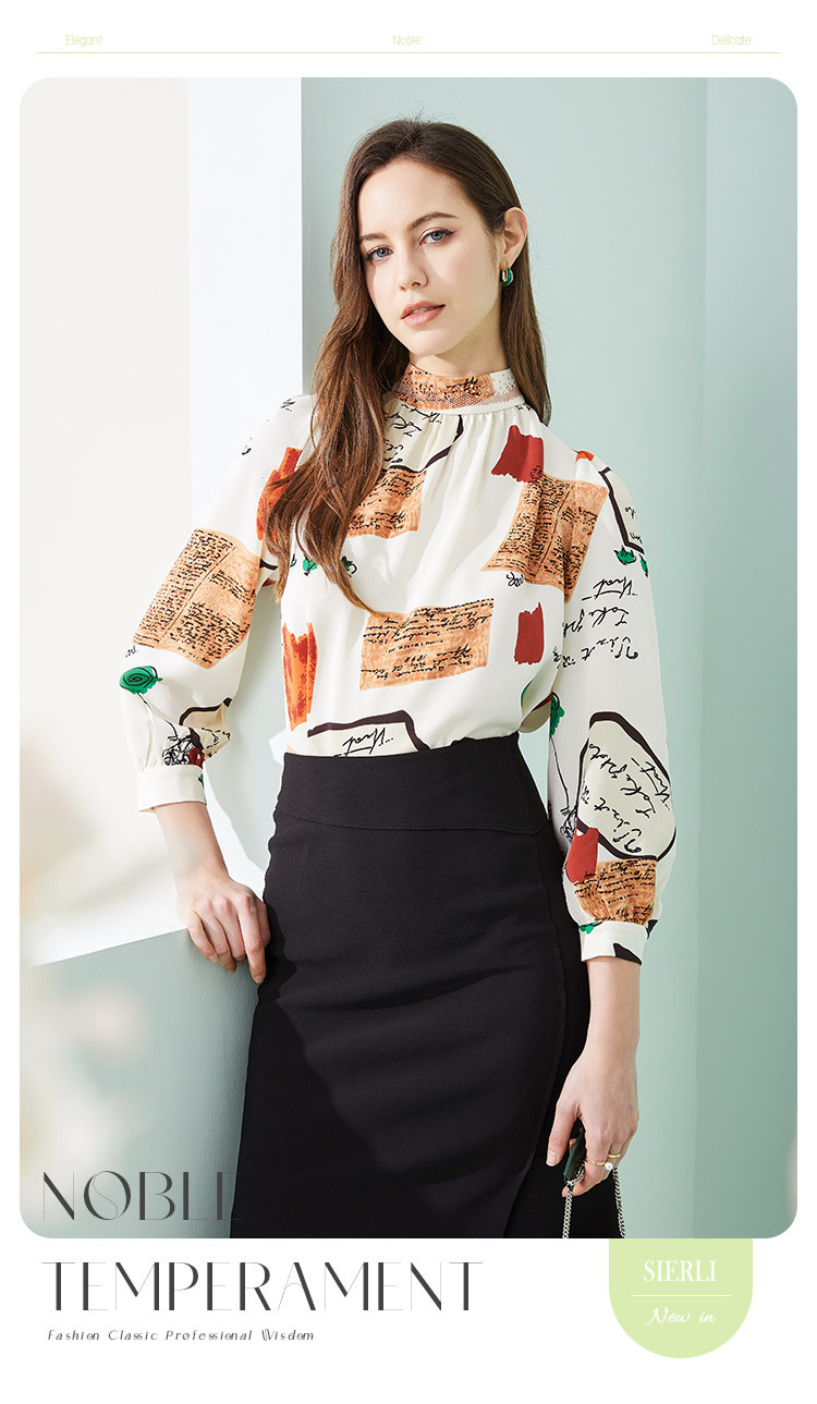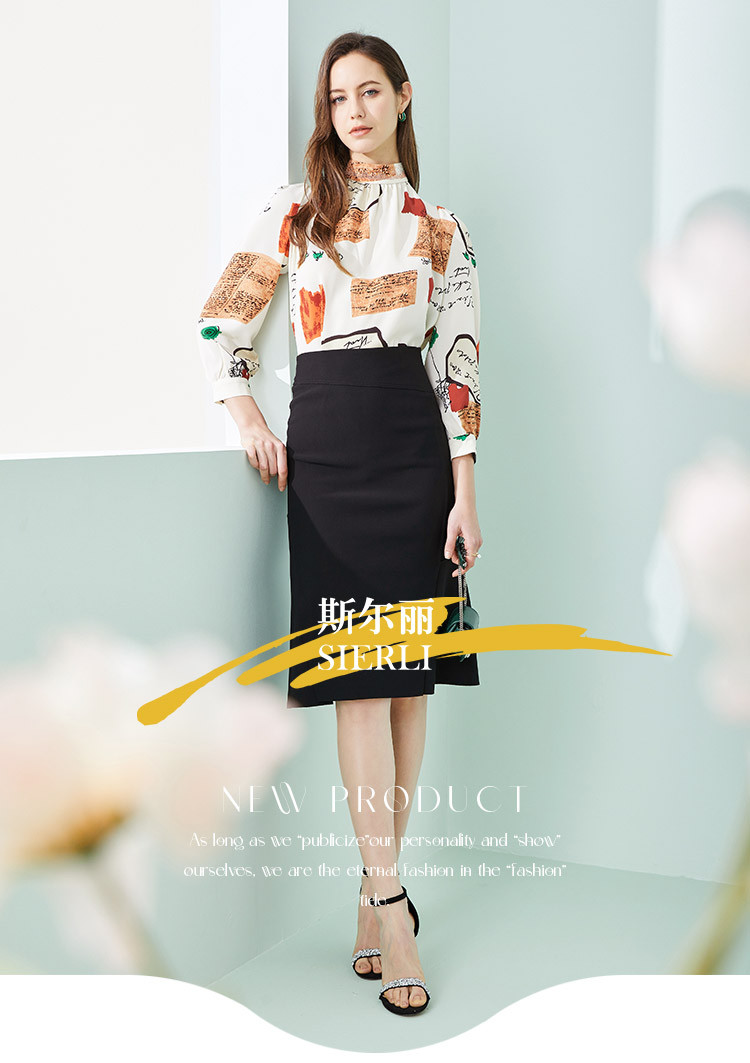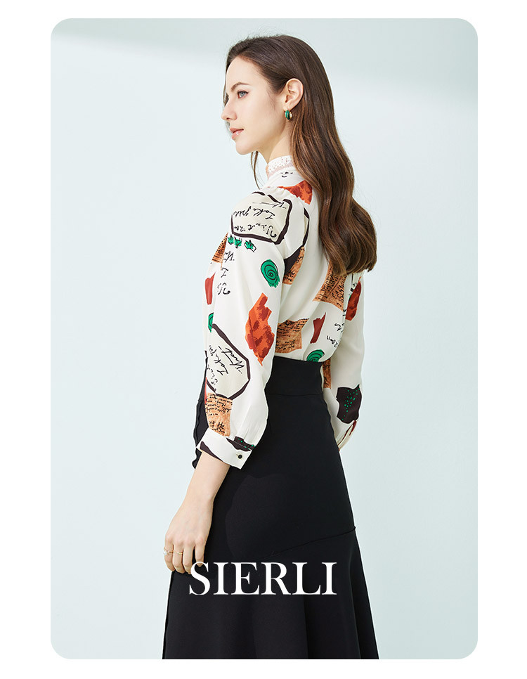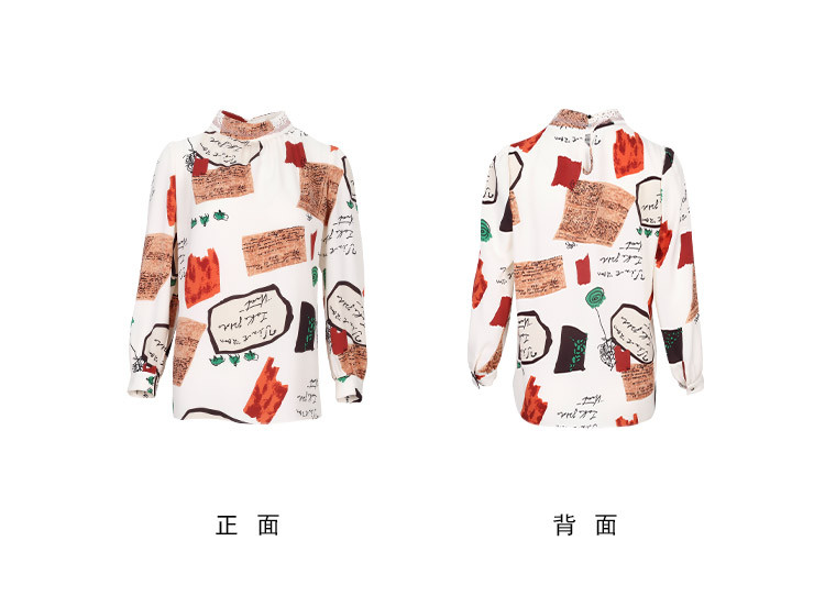 商品名称:商场同款春季波西米亚气质涂鸦不规则碎花拼色长袖衬衣 356191