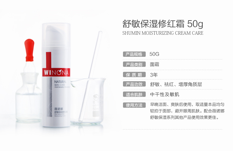 商品名称:Winqan/薇诺娜 保湿修红霜 50g 保湿修护补水