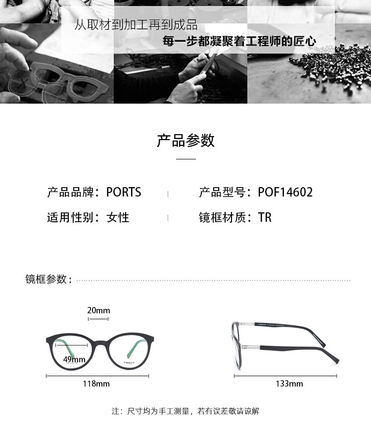 商品名称:Ports眼镜女款光学架时尚百搭TR全框眼镜架日常时尚POF14602 669002
