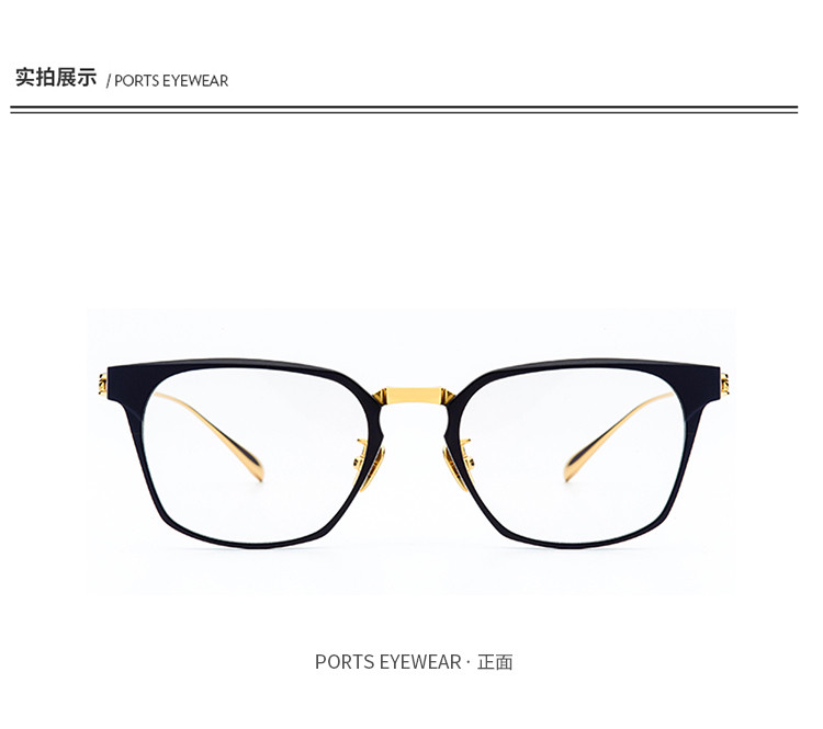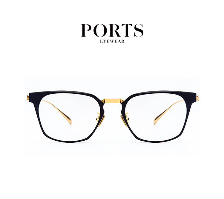 PORTS眼镜男款板材纯钛时尚眼镜架光学架POM12703 487690