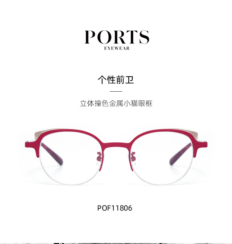 商品名称:Ports眼镜女款个性前卫时尚金属眼镜架光学架POF11806 115082