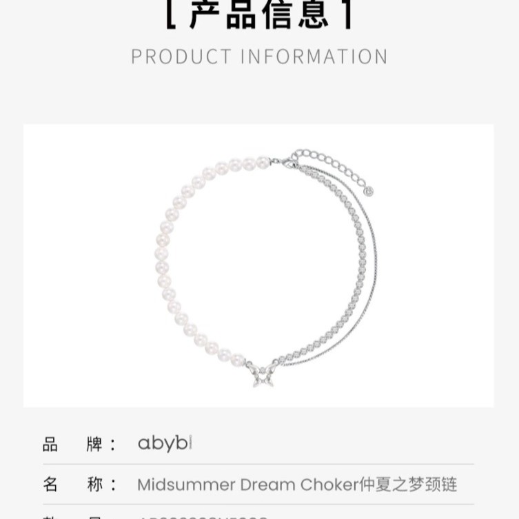 商品名称:abyb charming珍珠项链仲夏之梦锁骨链女AB202203NE008