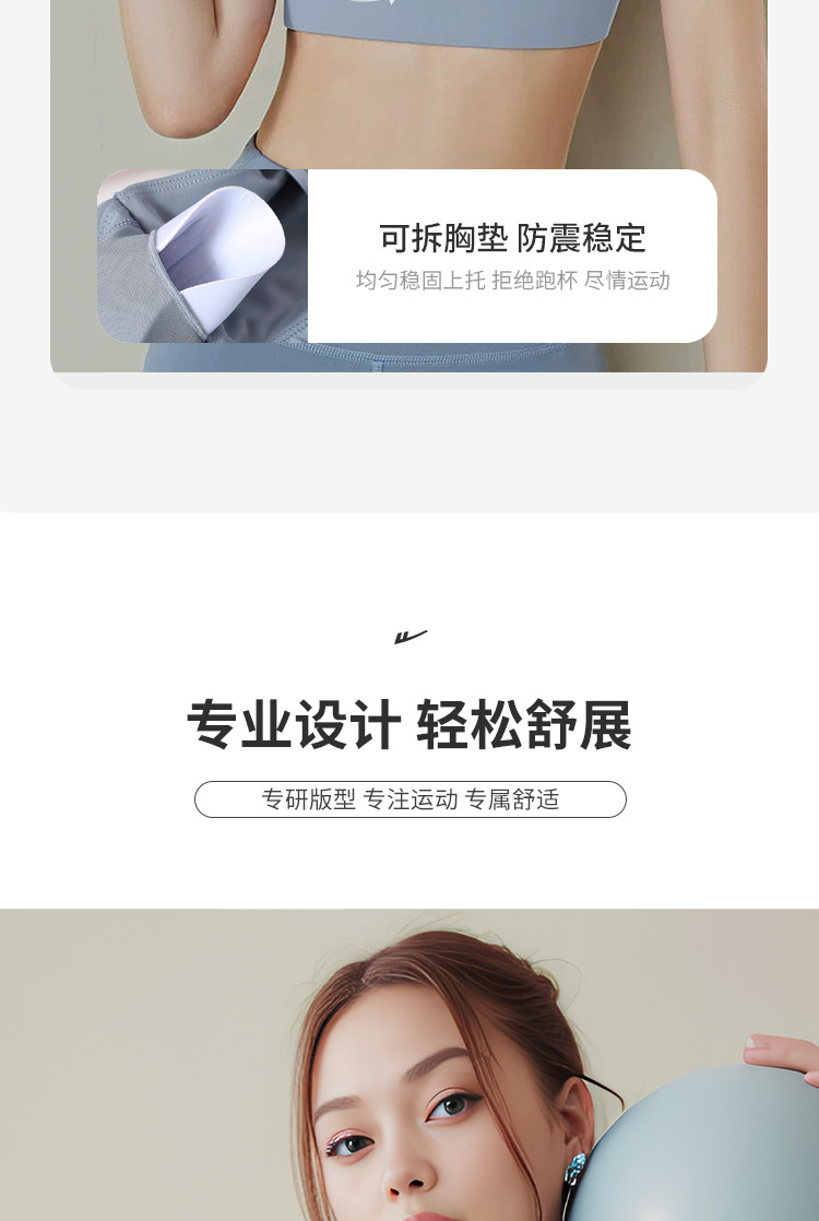 商品名称:防震内衣一体文胸运动背心女士健身可外穿瑜伽美背高强度跑步上衣 218259