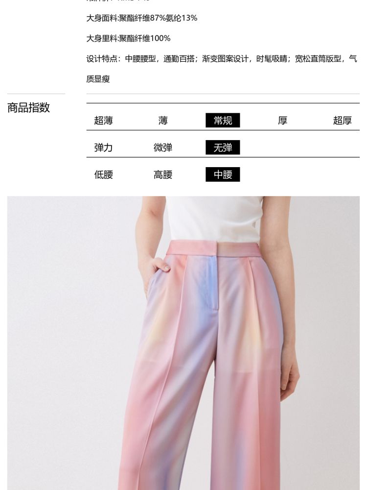 商品名称:【多巴胺渐变色彩】春夏专柜宽松直筒中腰休闲裤气质百搭时尚 615249