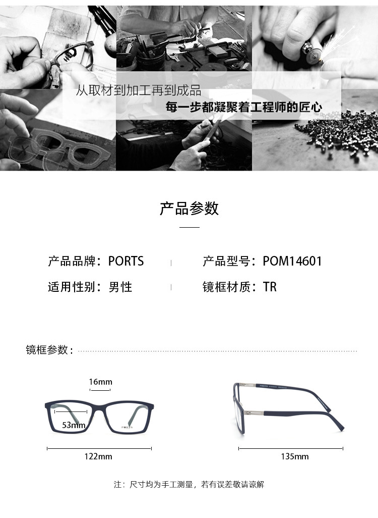 商品名称:男士轻盈椭圆框眼镜架POM14601 388490