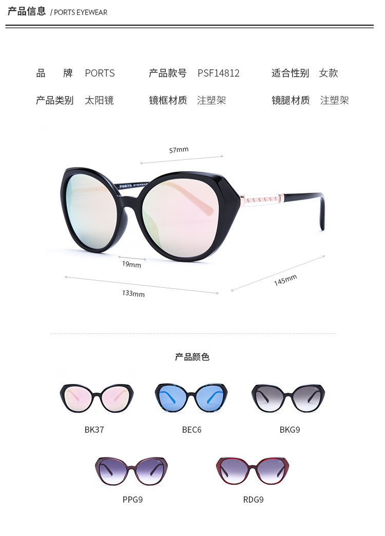 商品名称:PORTSPorts眼镜女款太阳镜PSF14812PSF14812 649226