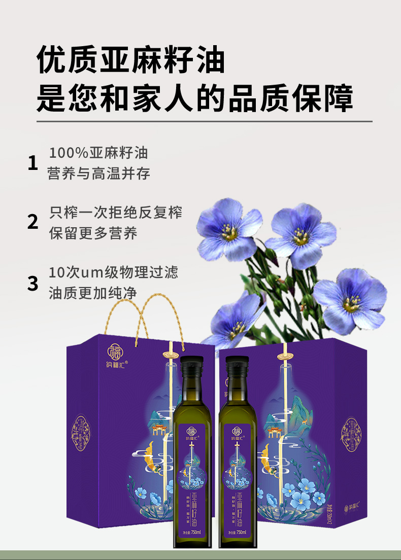 商品名称:纳福汇冷榨亚麻籽油礼盒750ml*2