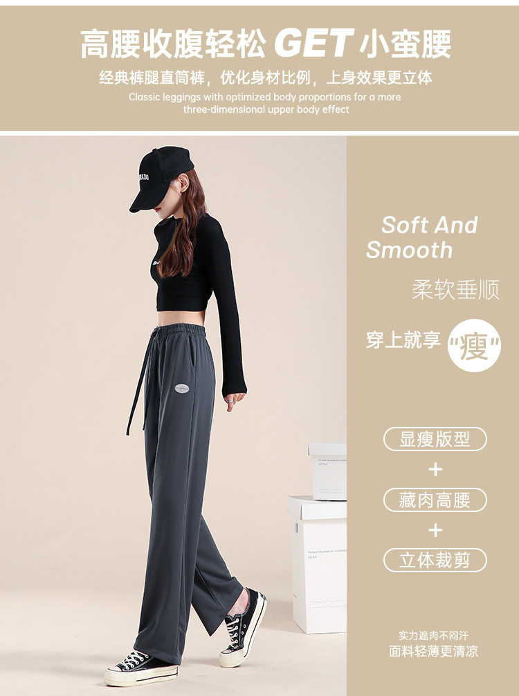 商品名称:夏季垂感薄款休闲裤女直筒裤高腰女裤阔腿拖地裤舒适百搭休闲裤女 583827