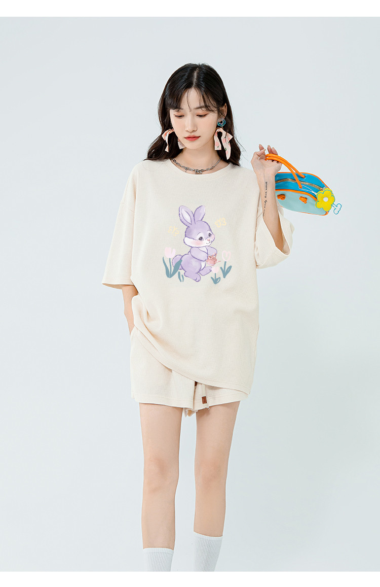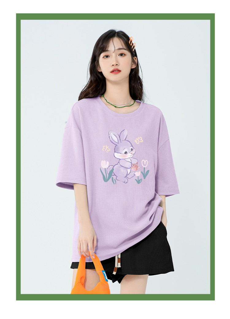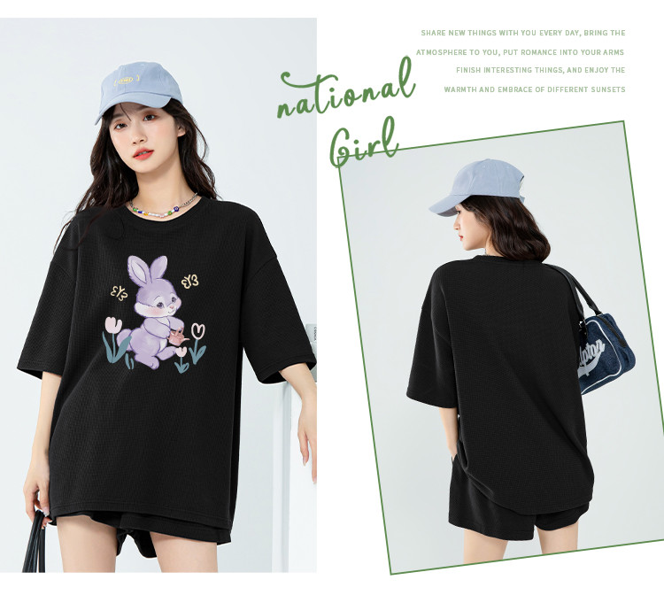 商品名称:【女装】华夫格中长款女式T恤夏季宽松休闲运动上衣 286099