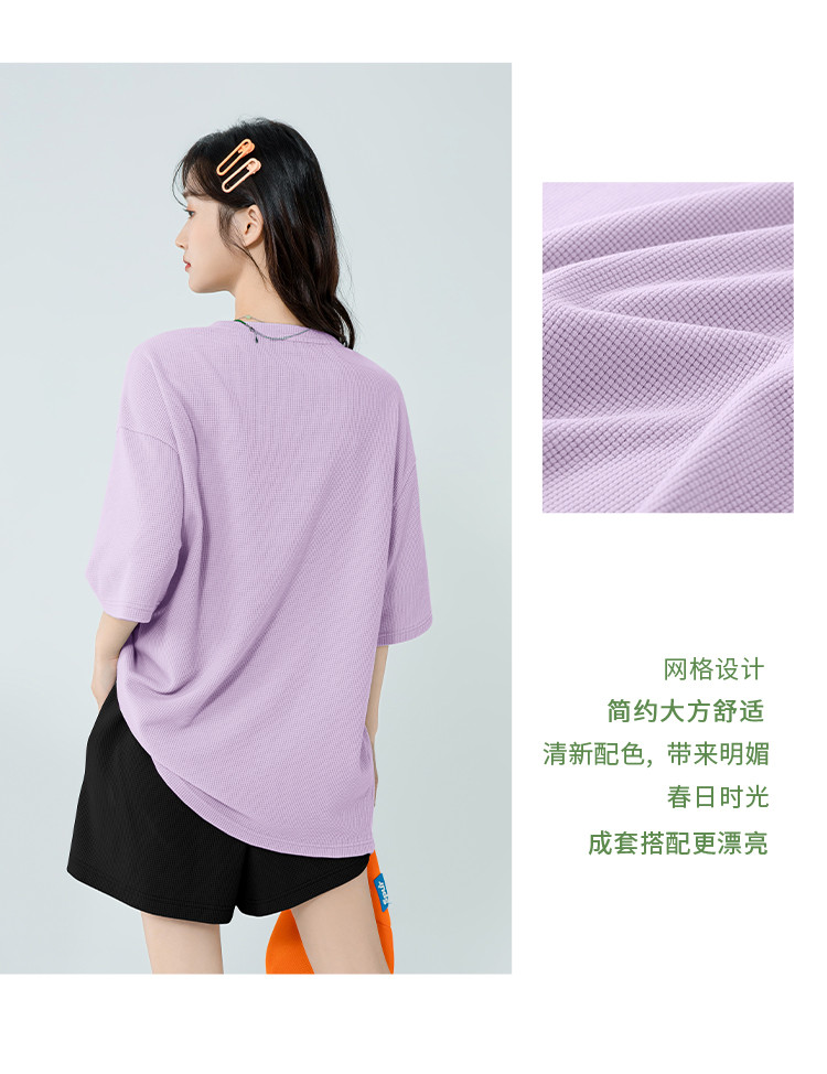 【女装】华夫格中长款女式T恤夏季宽松休闲运动上衣 286099