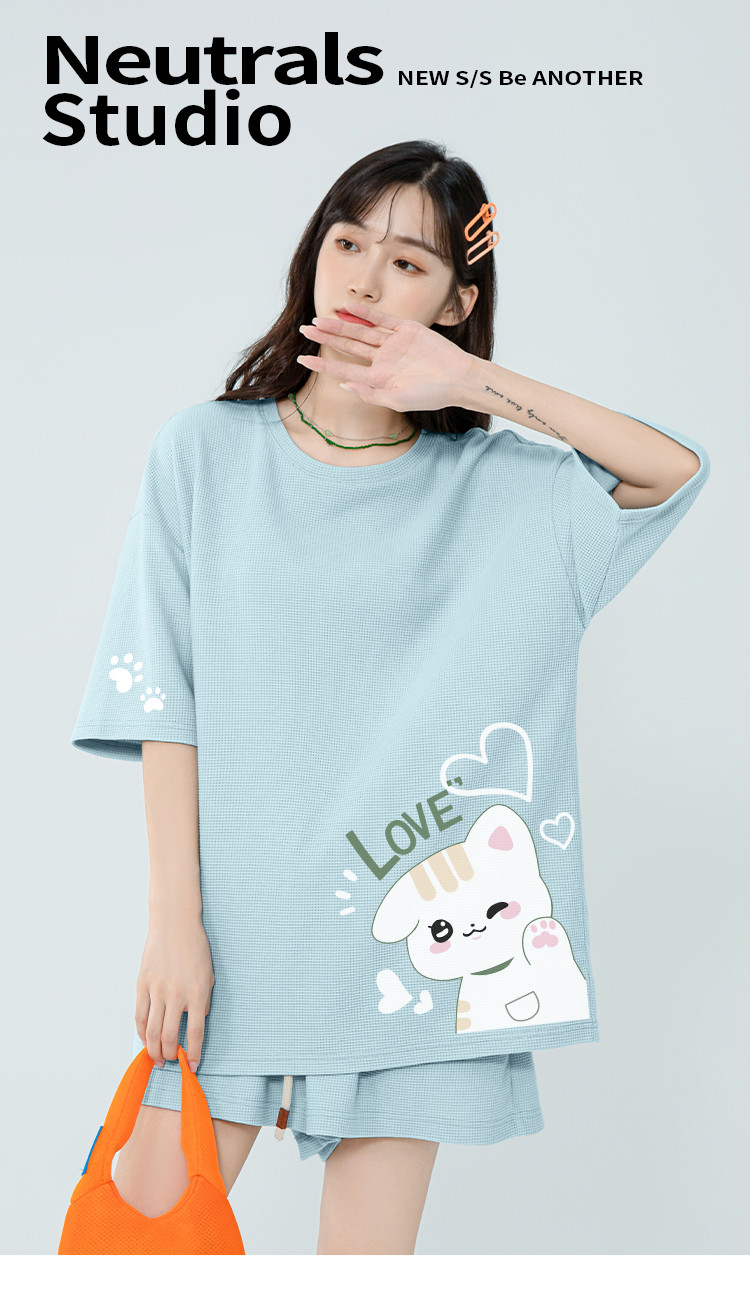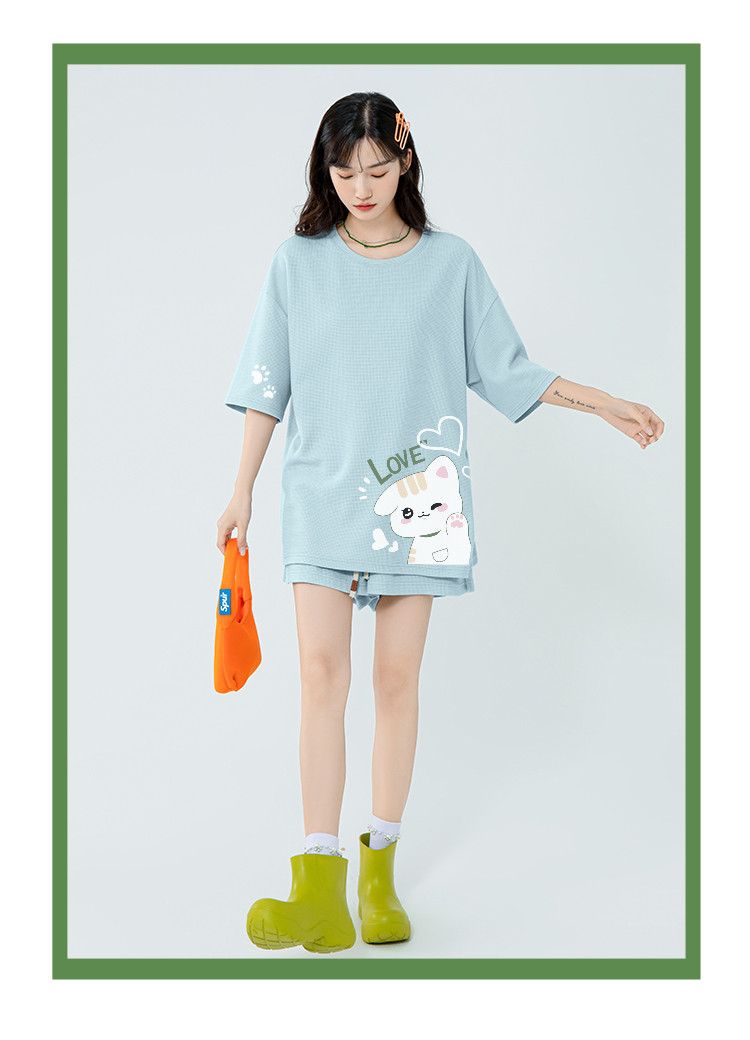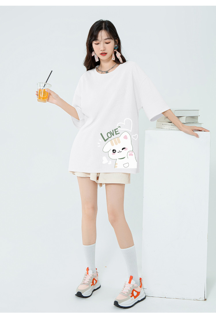 【女装】华夫格中长款女式T恤夏季宽松休闲运动上衣 201683
