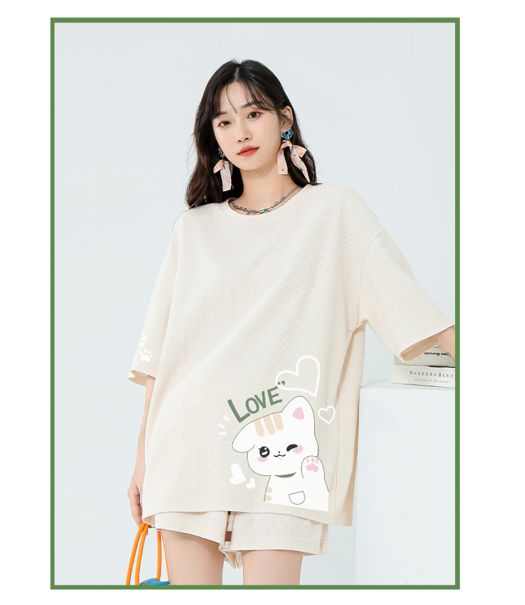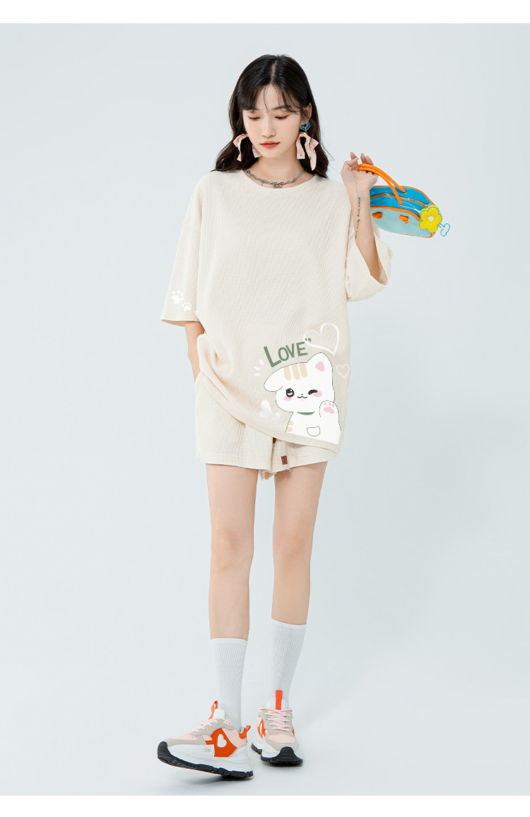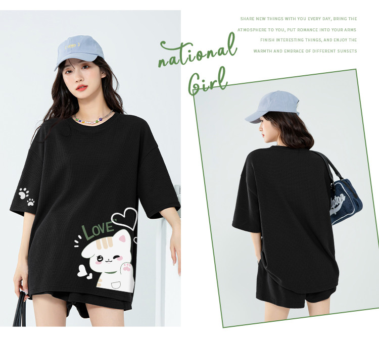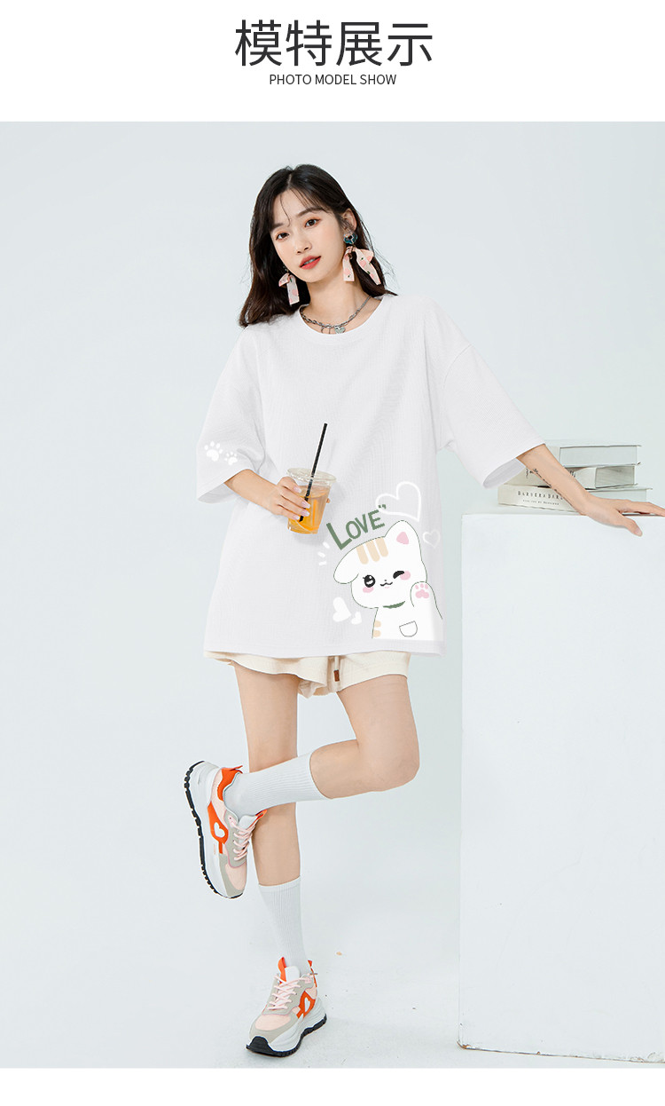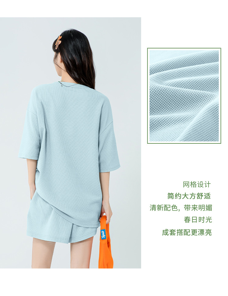 商品名称:【女装】华夫格中长款女式T恤夏季宽松休闲运动上衣 201683
