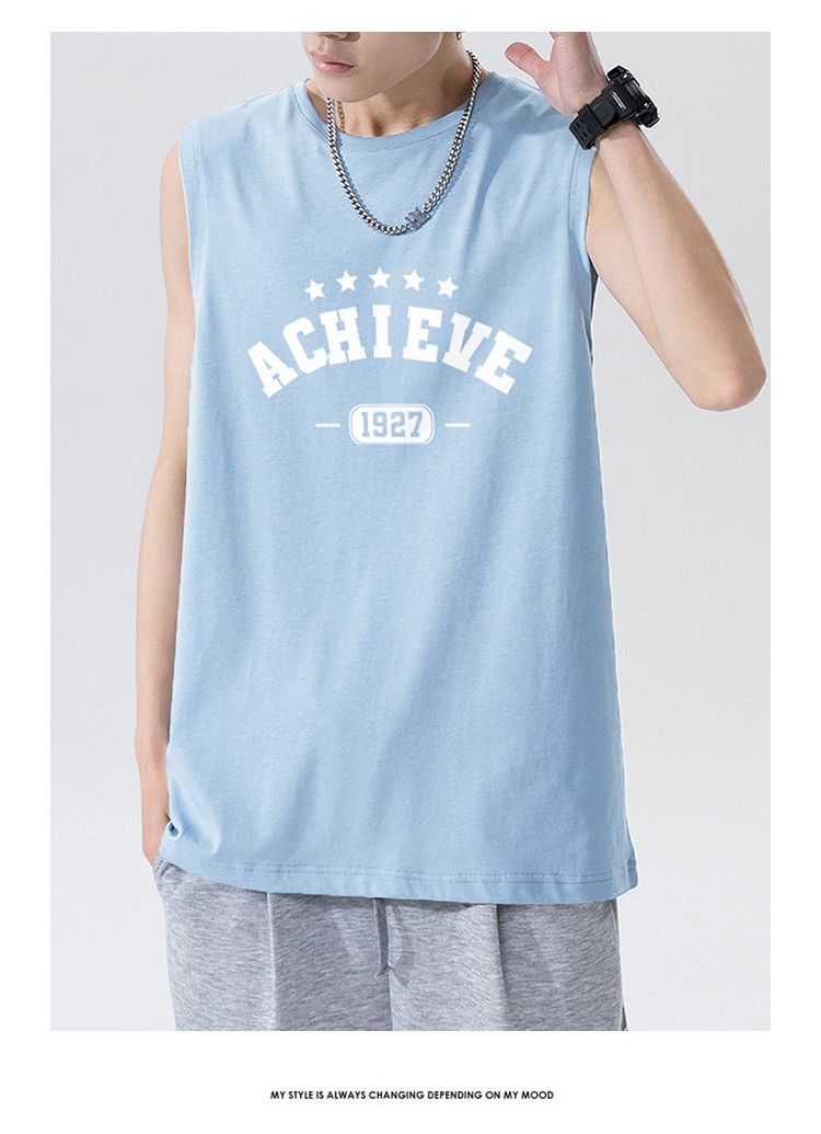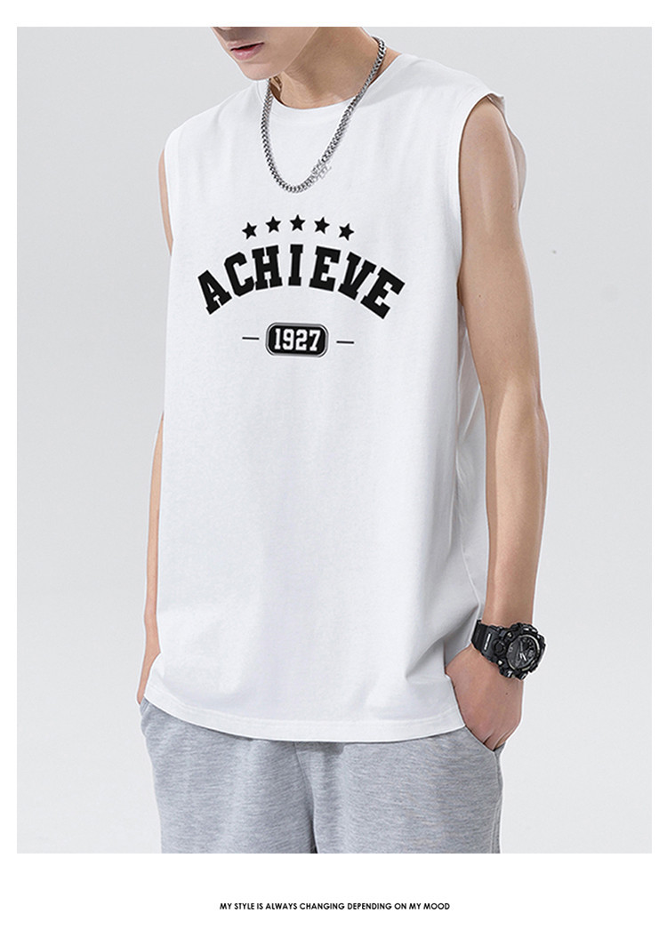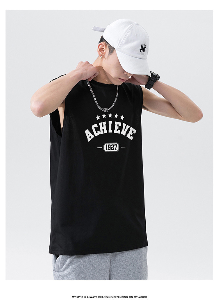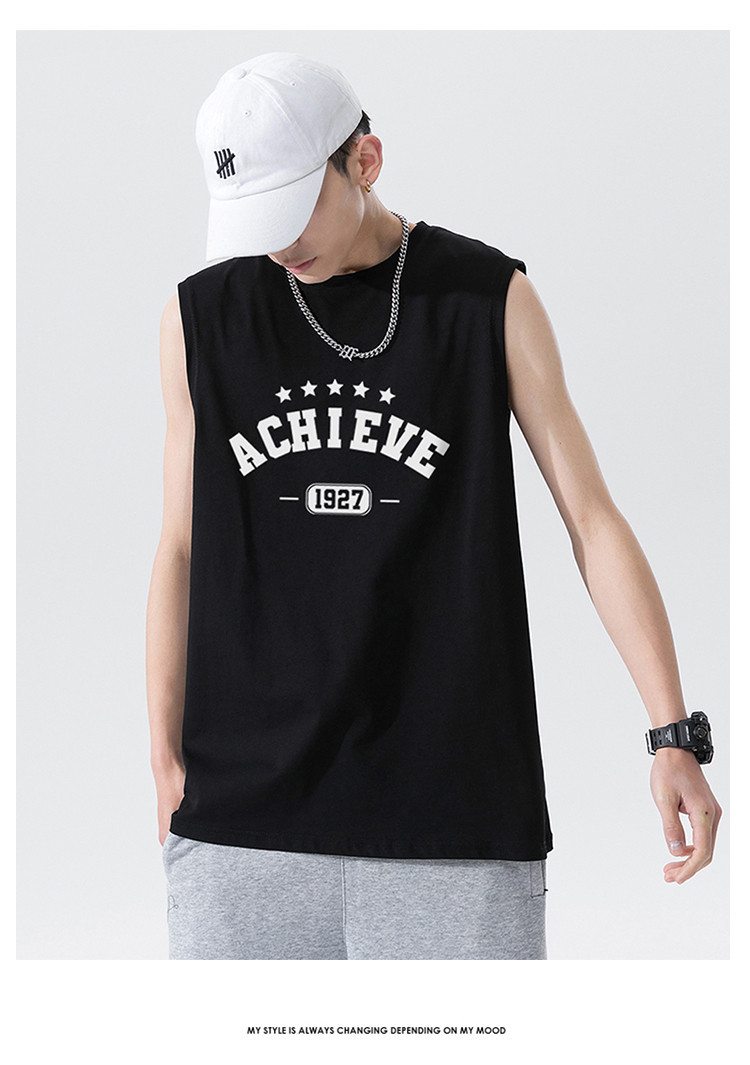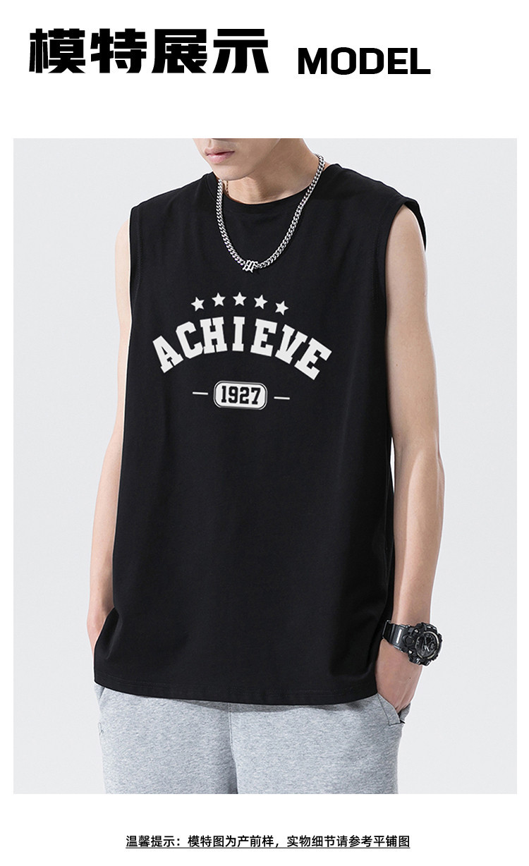 背心男士夏季纯棉透气美式男士无袖背心宽松潮流运动针织T恤 173907