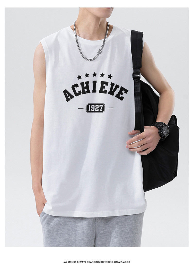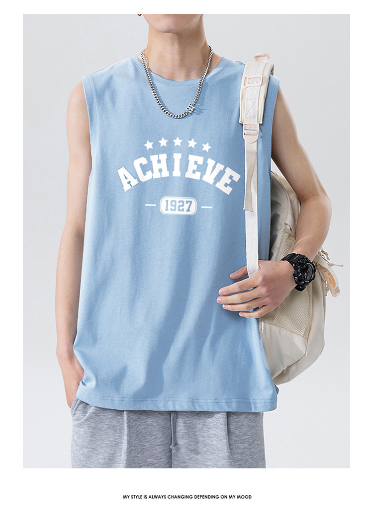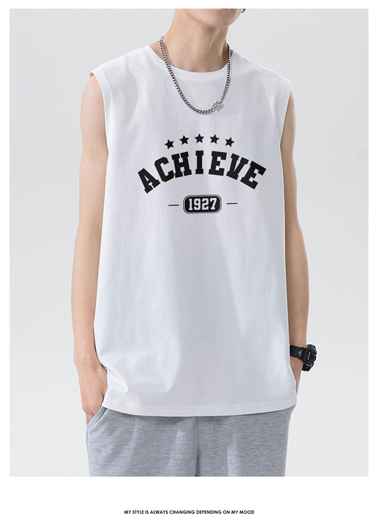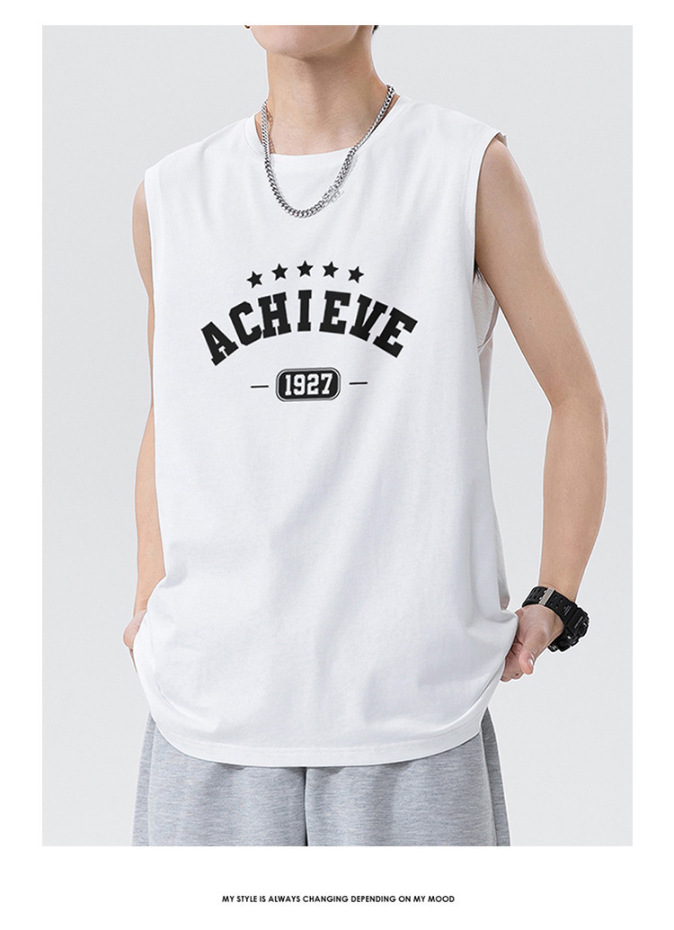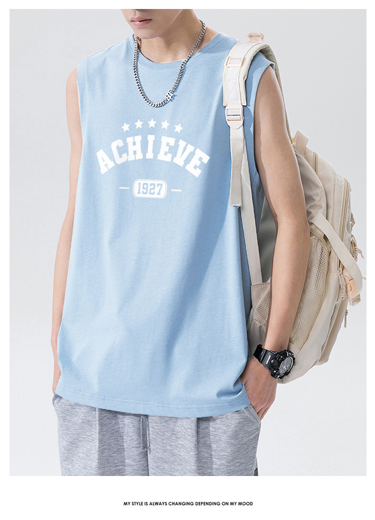 背心男士夏季纯棉透气美式男士无袖背心宽松潮流运动针织T恤 173907