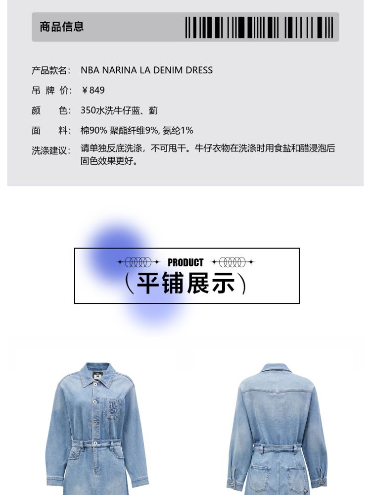 商品名称:【NBA联名】夏季莱卡A字牛仔衬衫连衣裙女 585306