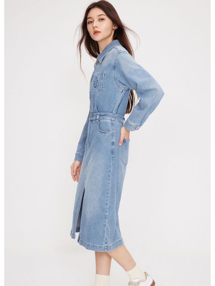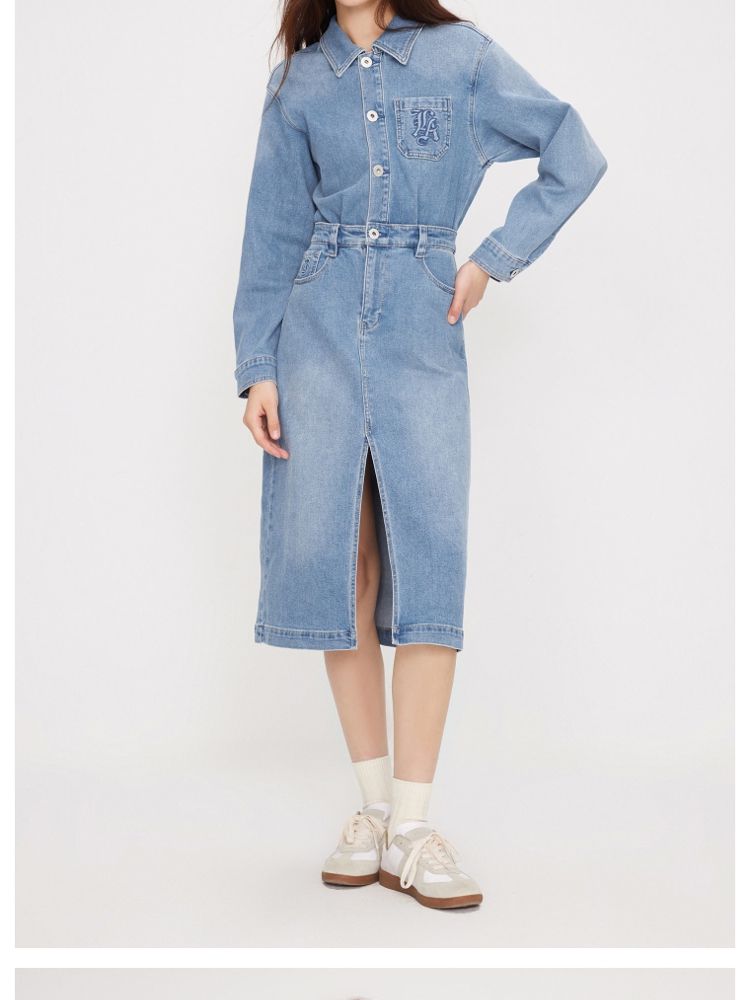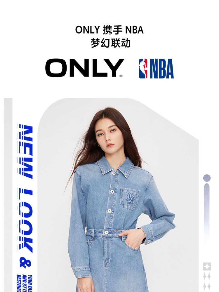 【NBA联名】夏季莱卡A字牛仔衬衫连衣裙女 585306