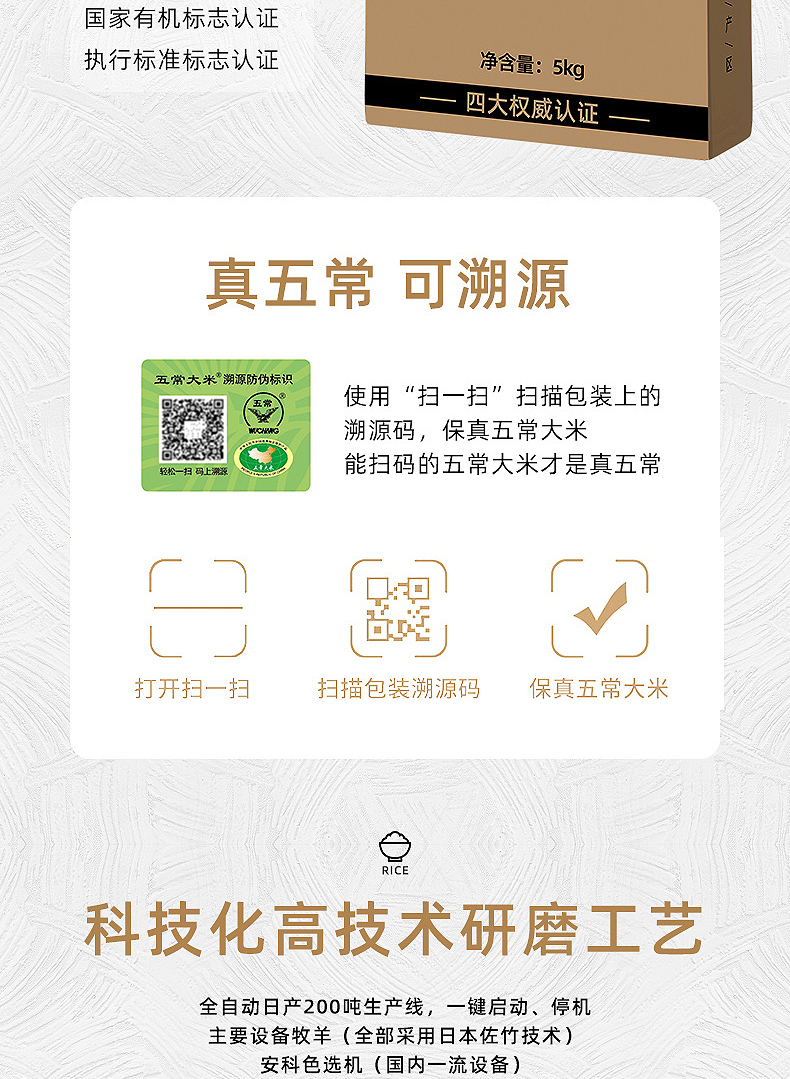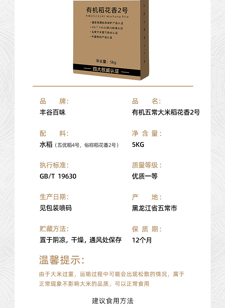 商品名称:有机五常稻花香2号大米5kg真五常标志认证嘎嘎好吃