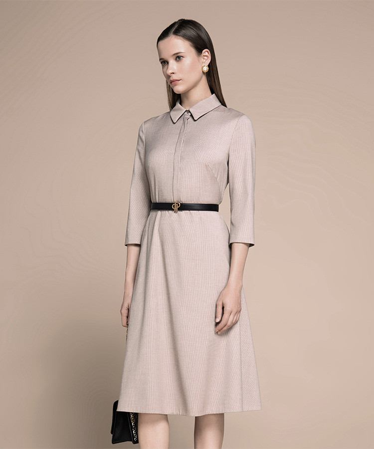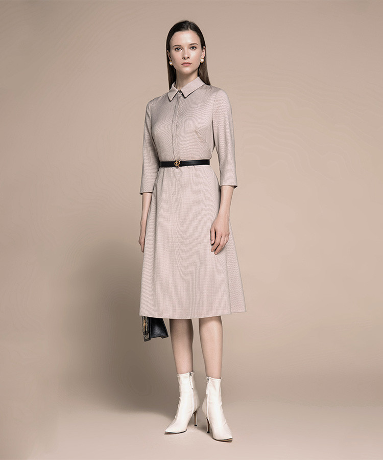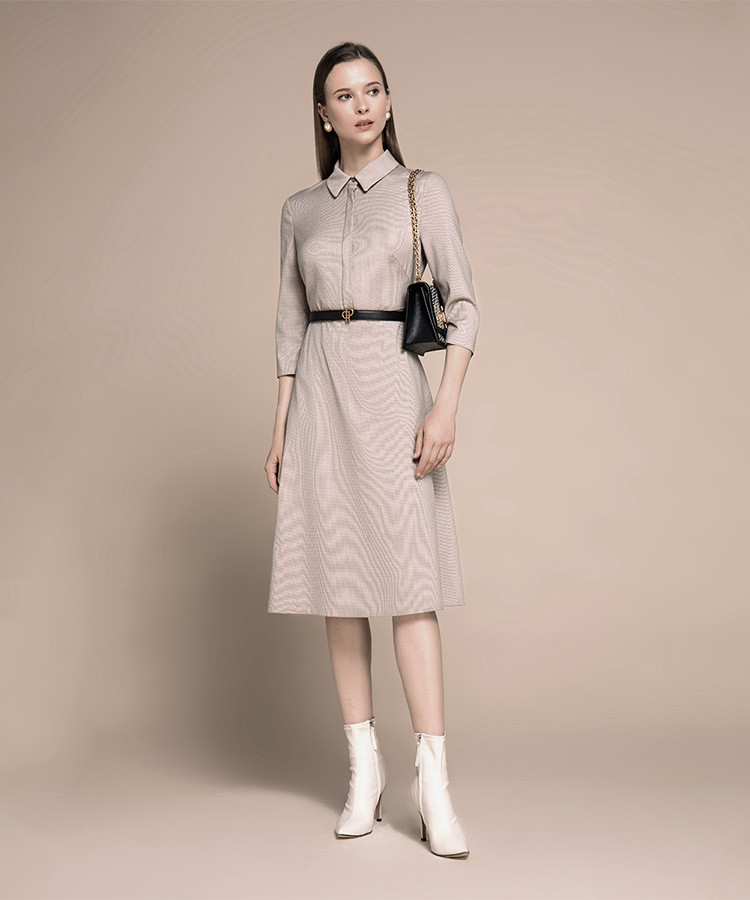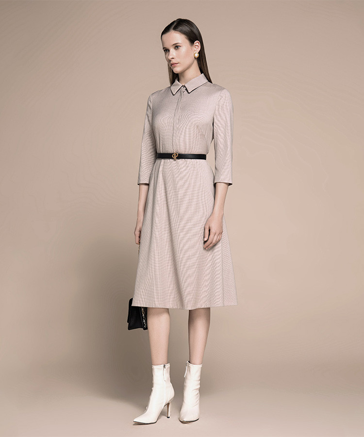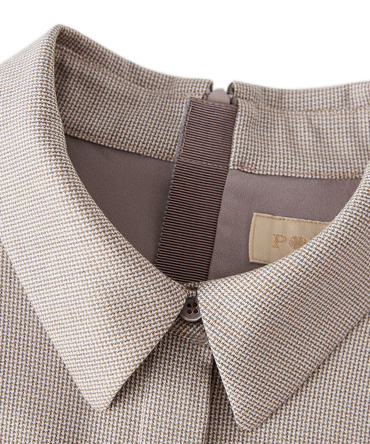 商品名称:宝姿秋冬女装格纹衬衫领通勤连衣裙 648074