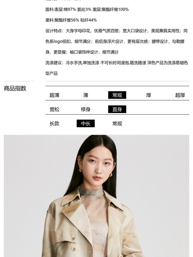 商品名称:【春夏美拉德】【廓形风衣】专柜同款优雅印花宽松外套女百搭时尚 660177