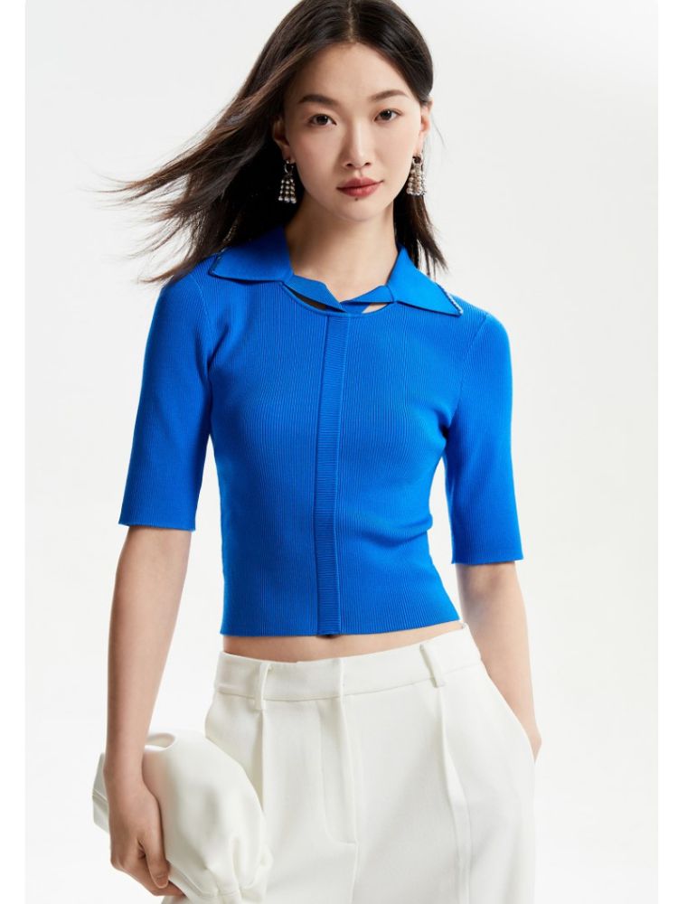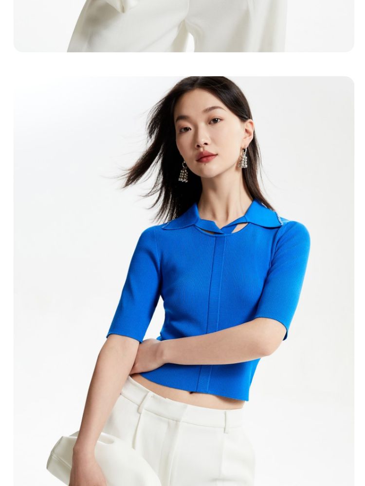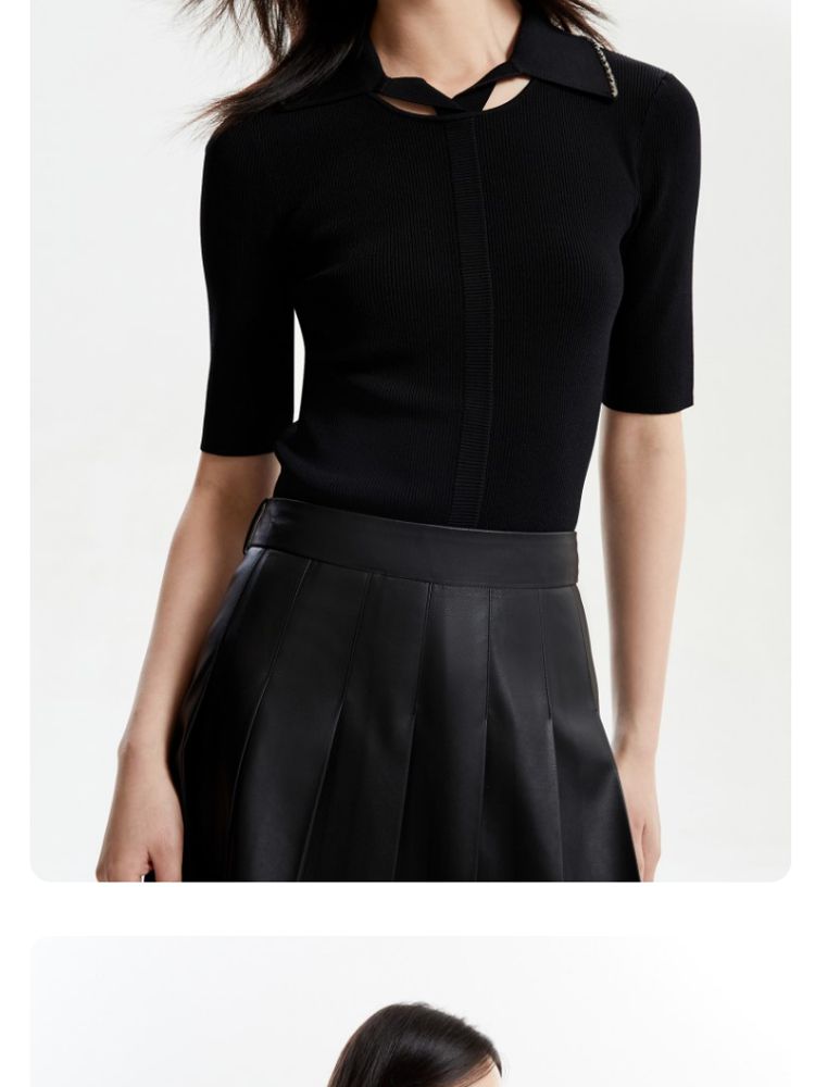 【坑条针织】修身短款套头简约通勤打底针织衫女 165457