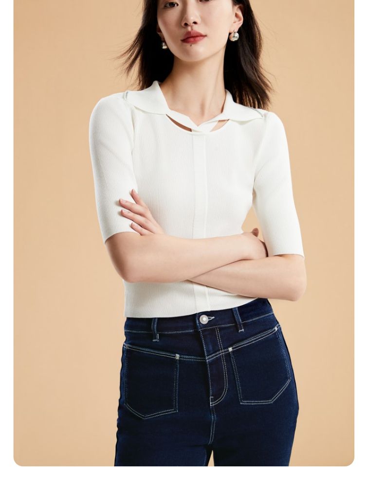 商品名称:【坑条针织】修身短款套头简约通勤打底针织衫女 165457