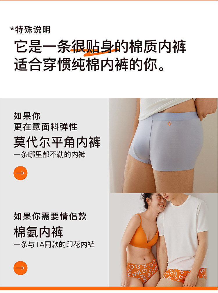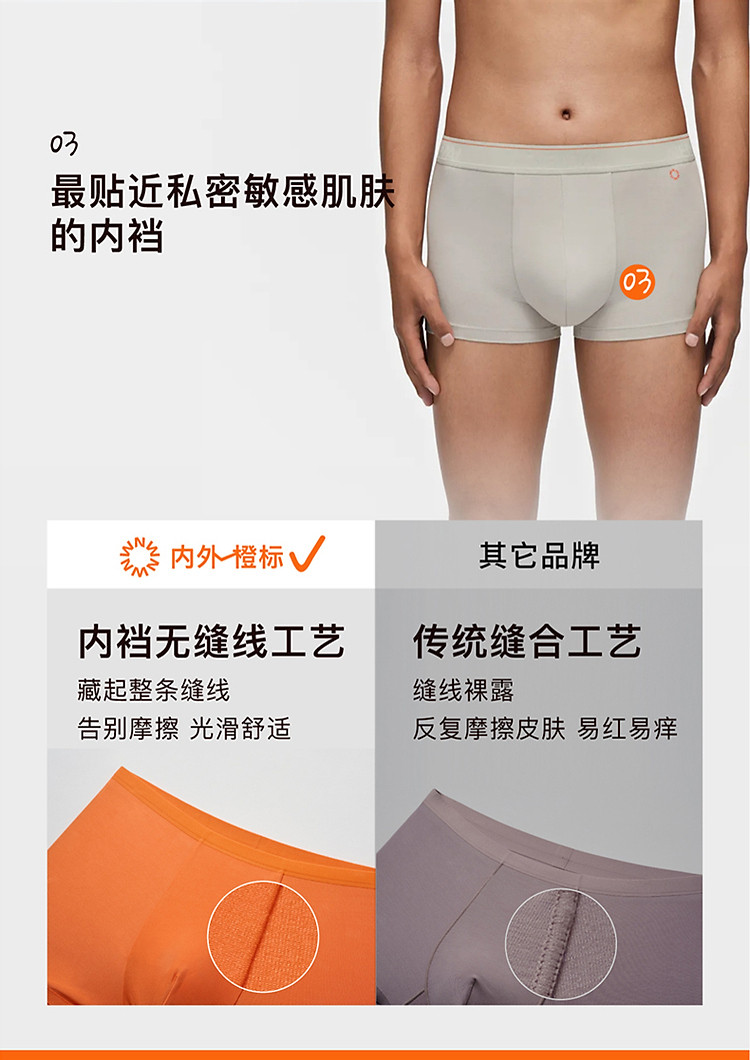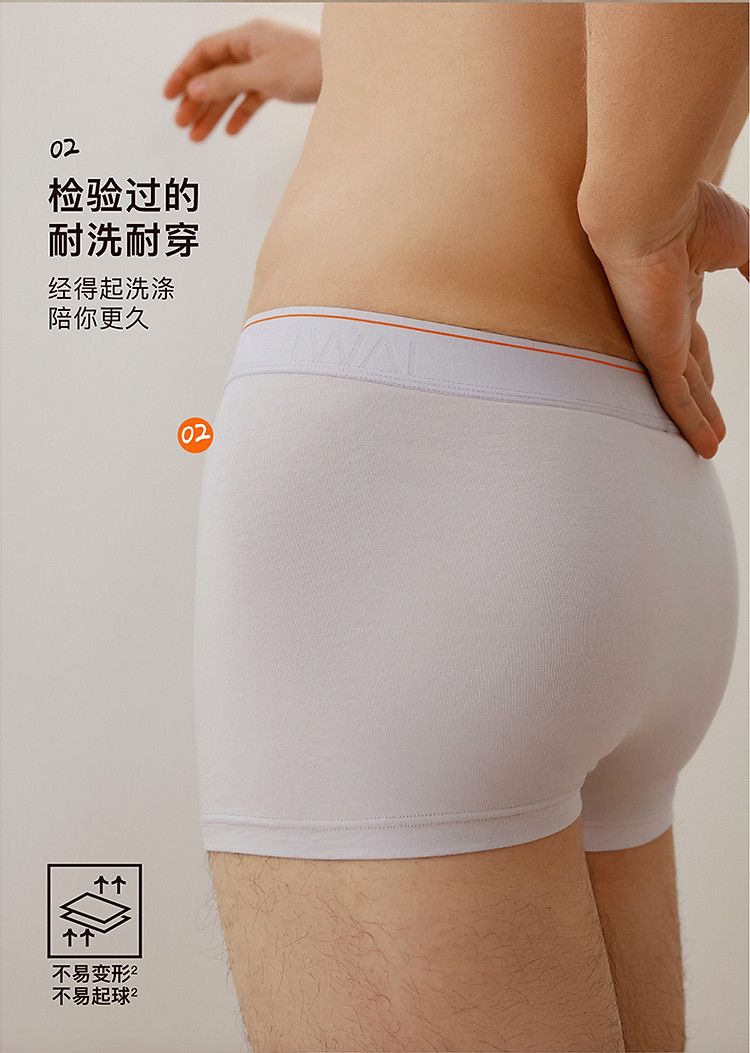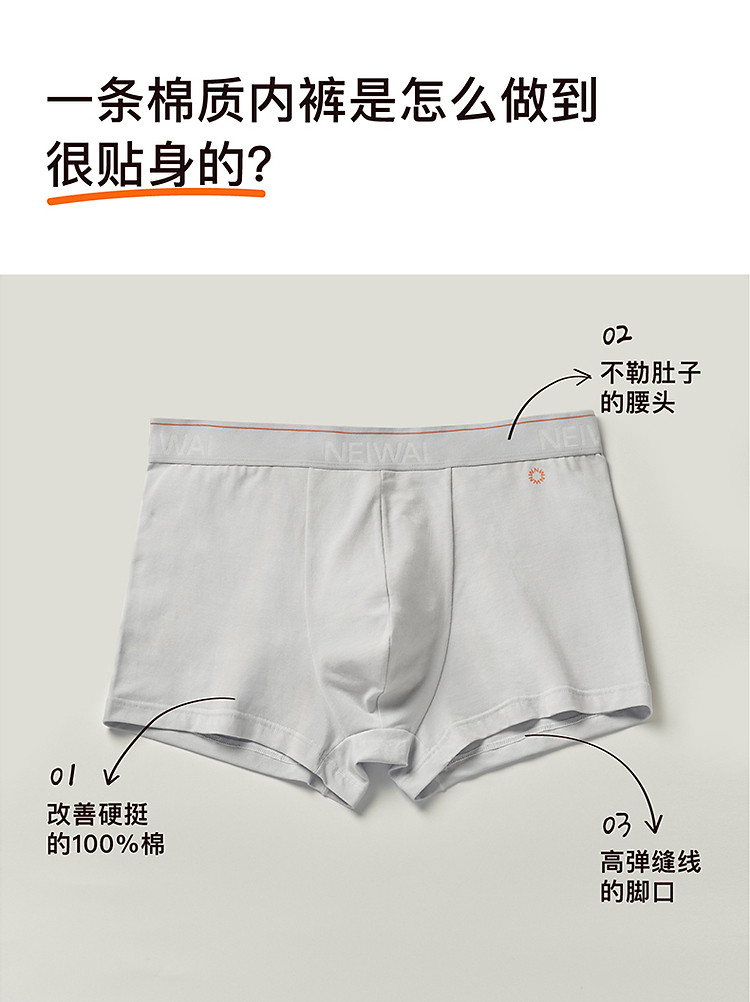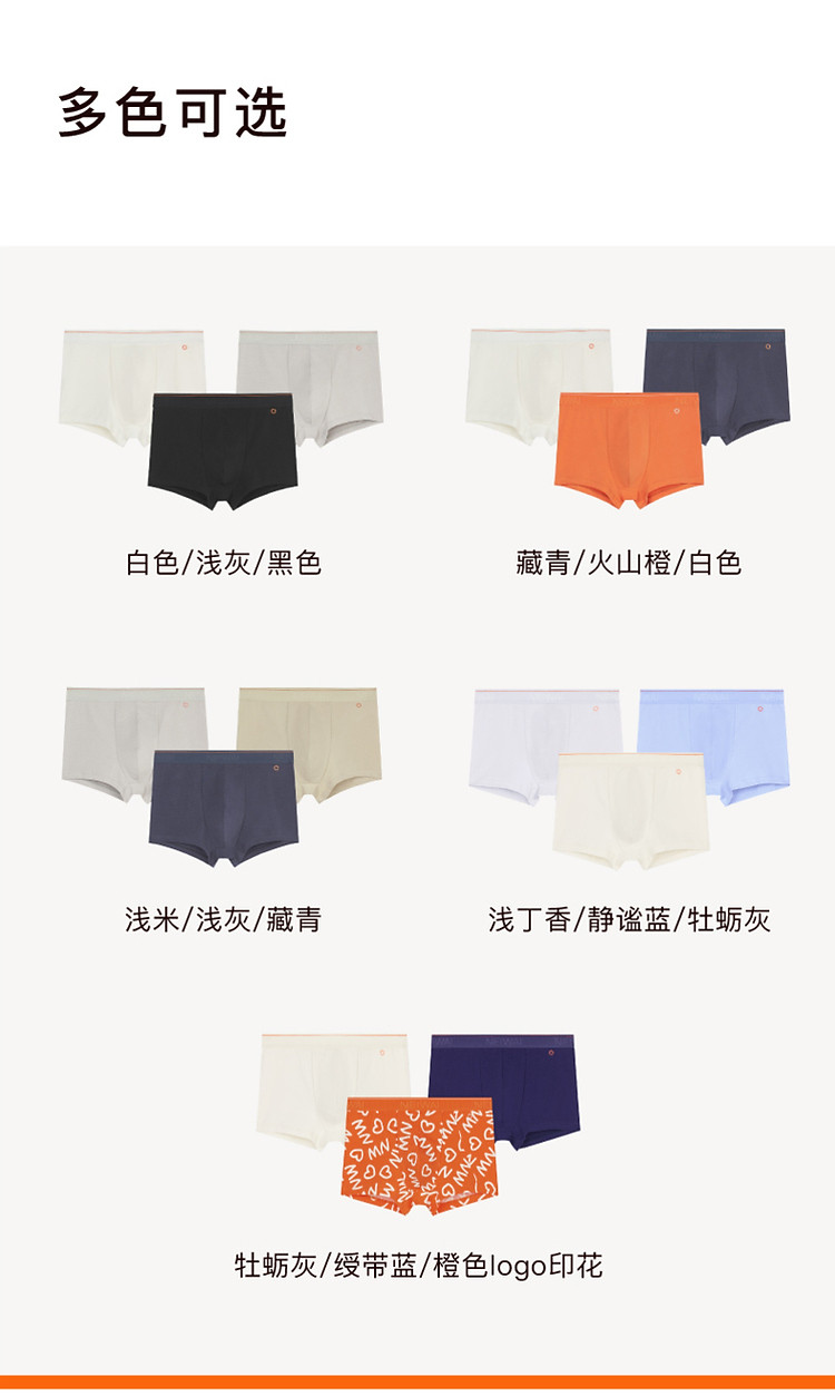 商品名称:NEIWAI内外橙标|男士50支棉质平角内裤舒适干爽3条装 545994