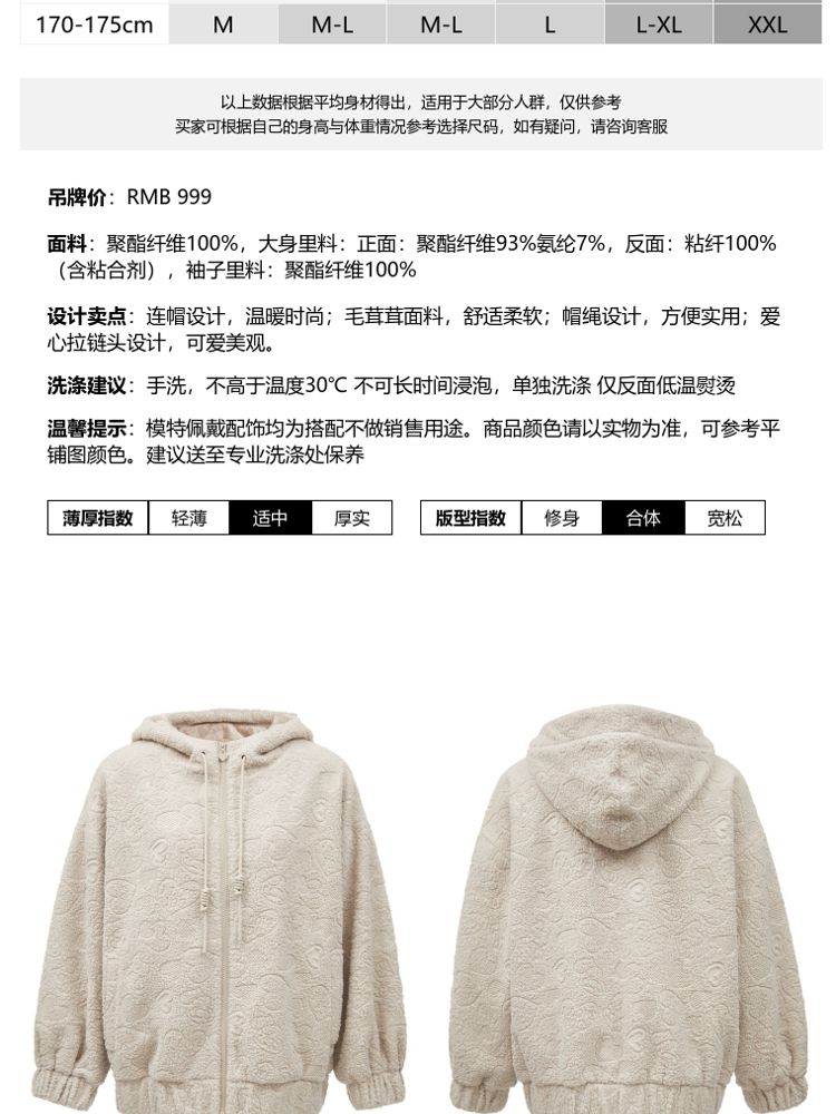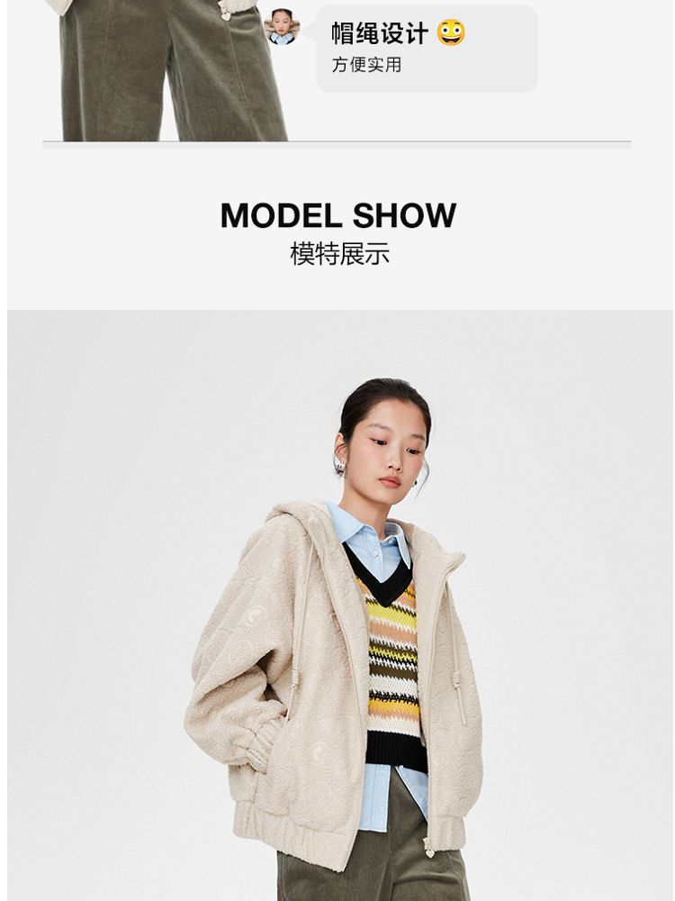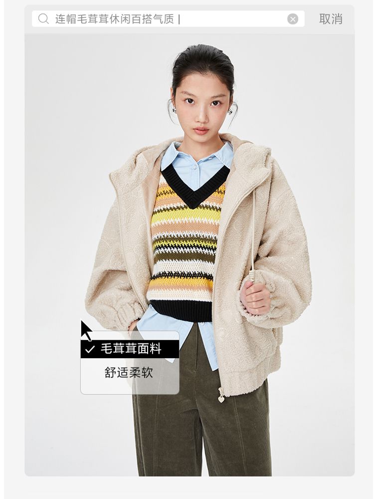 商品名称:【春夏美拉德】【专柜同款】外套女宽松连帽毛茸茸气质百搭时尚 772177