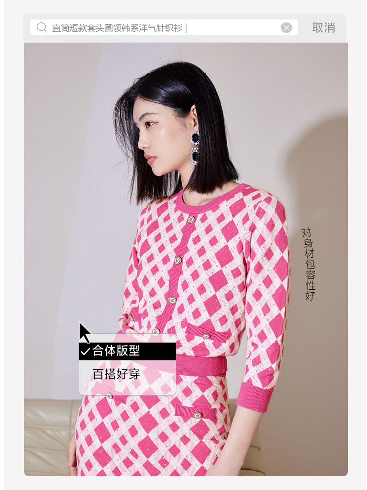 韩系洋气季直筒短款套头圆领女针织衫气质百搭时尚春夏 698129