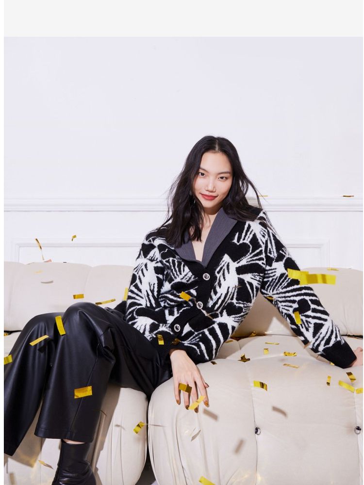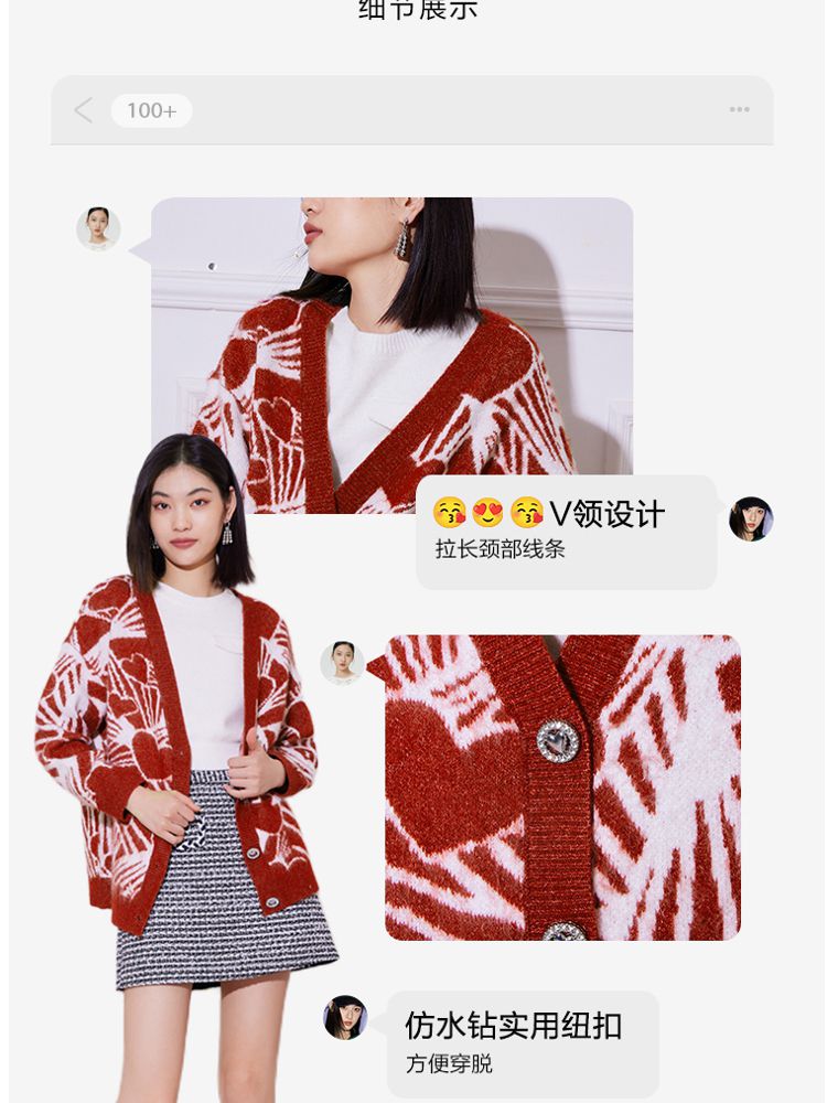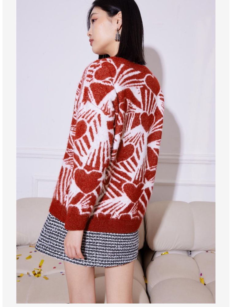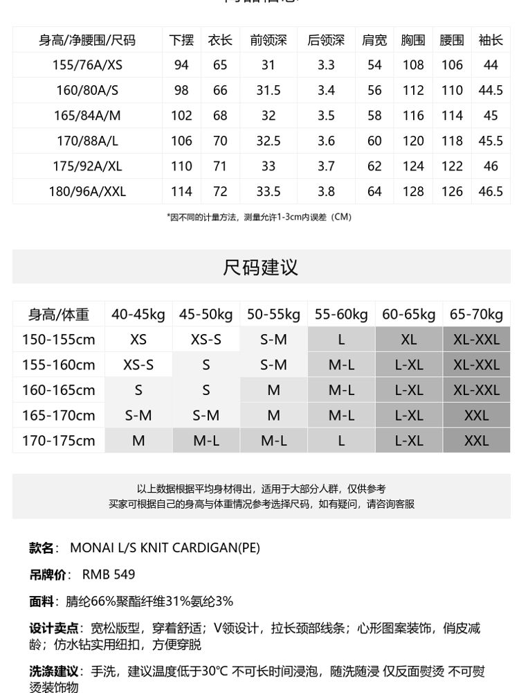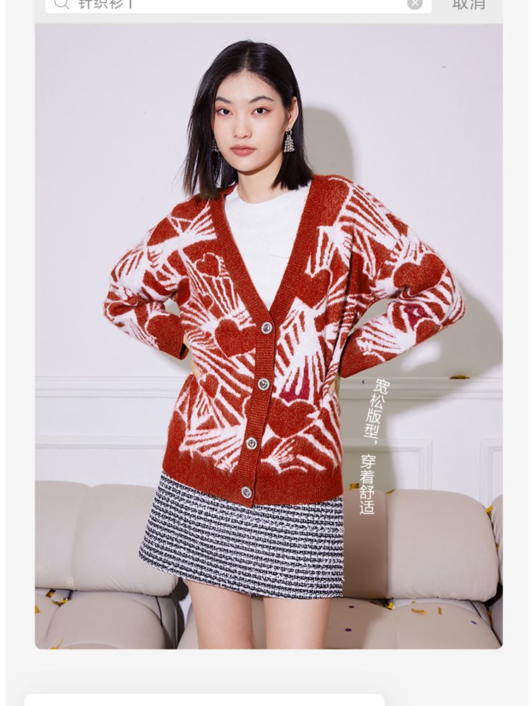 商品名称:宽松中长款V领爱心针织衫开衫女气质百搭时尚春夏 010769